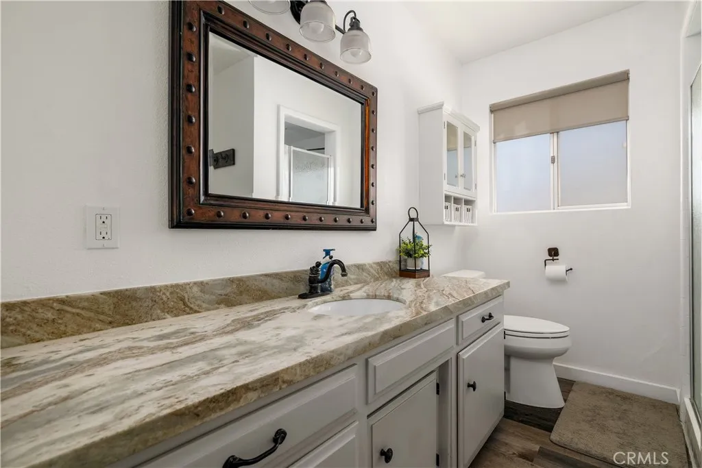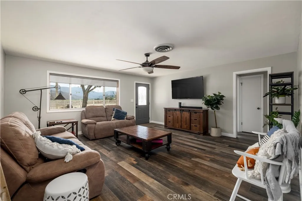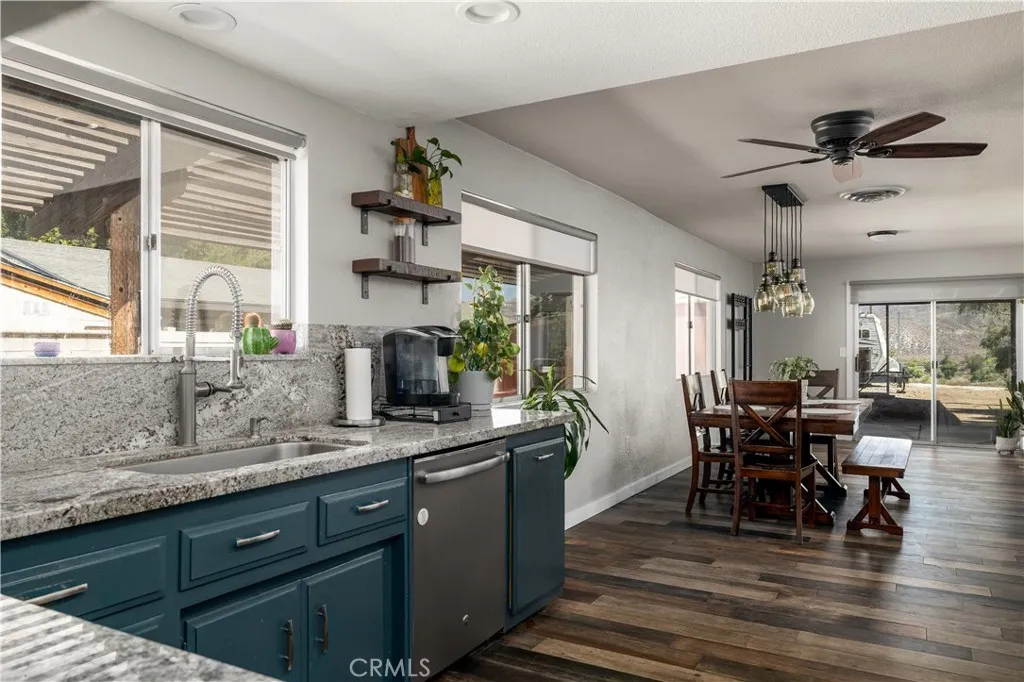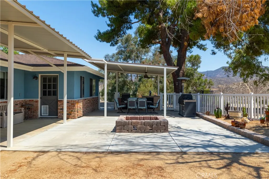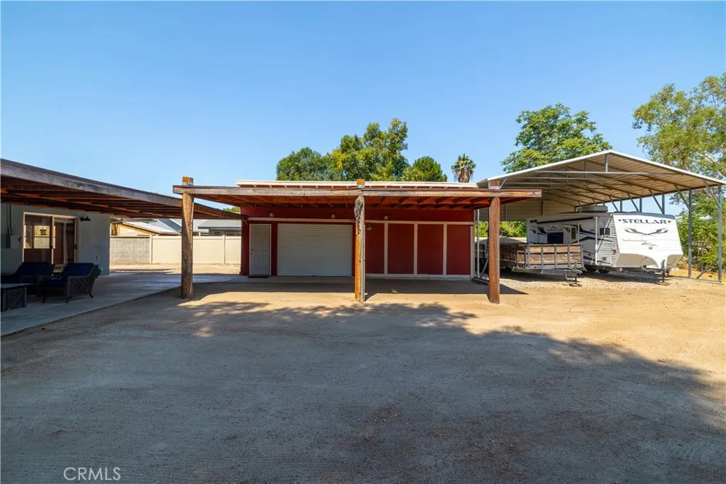 ***BRING ALL OFFERS - SELLERS CLOSED ON THEIR REPLACEMENT PROPERTY*** This East Hemet Gem sits on nearly an Acre of Land with Incredible Views and is loaded with Amenities! Welcome to 44718 Palm Avenue, where comfort, functionality, and wide-open space come together in perfect harmony. This beautifully maintained cul-de-sac, corner lot sits on 0.89 of an acre and offers so much more than just a home. Outside, you will find two covered RV parking areas, one with a 50 AMP Power Outlet, a Detached 2-Car Garage with Full Power, EV Charger, Heating & Air Conditioning, and a large built-in Office in the rear, perfect for a business, creative studio, or hobbyist. If you are looking for lots of storage space and covered parking, this property comes with a large Barn and a covered patio area in the rear, with an additional covered parking structure tall enough for Trailers, Equipment and Toys! Patio Covers wrap around the front, side and back of the home, creating multiple outdoor living areas. This home has a built-in BBQ Island with Sink and a Firepit, ideal for entertaining. This home has been recently painted, has a newer Roof, less than 2 years old, and Rain Gutters. Enjoy low-maintenance landscaping with gorgeous views of the mountains and San Jacinto River! Inside, this recently remodeled home shines with stylish Tile Flooring that mimics the warm look of wood throughout. Granite Countertops, Modern Pull-Down Faucet, Freshly Painted Cabinets, Upgraded Lighting Fixtures including a Designer Chandelier above the Dining area, New Vanities, resurfaced Showers, and wood accent tou