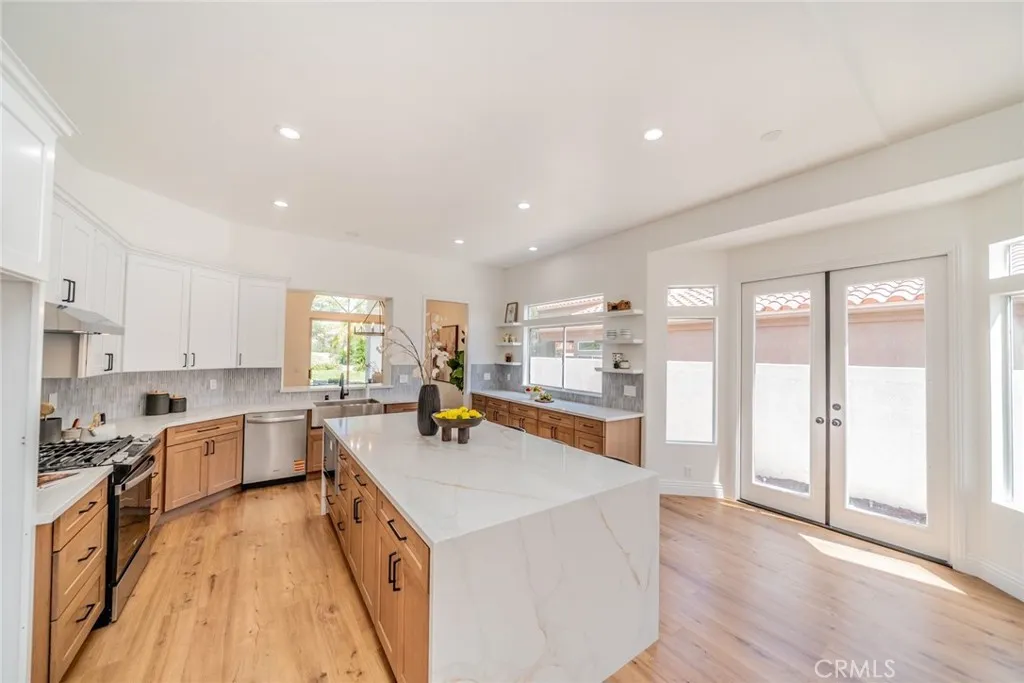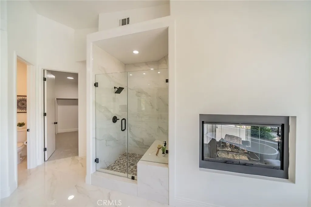 LUXURY LIVING awaits! Welcome to refined elegance in one of Murrieta's most sought after guard gated communities - BEAR CREEK. This immaculate luxury single story home offers a seamless blend of modern design, upscale finishes, and serene views. Perfect for those who crave comfort, style and resort like living! Step inside to discover a newly REMODELED bright and inviting living space surrounded by expansive windows bathing you in natural light and providing stunning views. The gourmet kitchen is a chefs' dream, featuring new stainless steel appliances, custom backsplash, quartz countertops, and spacious center island with waterfall edging, sure to impress and ideal for entertaining. Your living space includes a separate living room and family room both with their own fireplaces. The family room also features a step down bar and is situated to enjoy the surrounding picturesque views just outside along with your adjoining dining room. Your primary suite is a tranquil retreat with a spa-inspired ensuite bathroom featuring large walk in custom tiled shower, soaking tub and double sided fireplace. Additional bedrooms offer generous space for guests or a home office. Bonus- EVERY bedroom features their own ensuite bathroom as well as a 4th hallway bathroom for added convenience- and all have been renovated. Additional upgrades to the home include new flooring throughout, new paint inside and out, new fixtures and lighting, and more. Enjoy exclusive access to community amenities including Jack Nicklaus Signature Golf Course, resort style pool, tennis courts, gym(s), and clubhouse