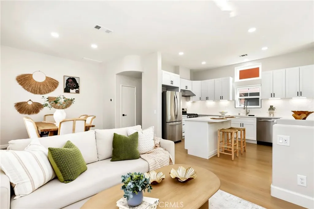 Welcome to Corte Bella, where timeless European-inspired architecture meets modern luxury in a completely detached home with a private backyard! This stunning 4-bedroom, 2.5-bath residence boasts 1,600 sq. ft. of thoughtfully designed living space, offering an open-concept split-level layout with soaring cathedral vaulted ceilings, abundant natural light, and high-end finishes throughout. Step into the inviting formal living and family rooms, where a cozy fireplace, and recessed lighting create the perfect ambiance for relaxation and gatherings. The gourmet kitchen is a chefs dream, featuring custom cabinetry, sleek quartz countertops, a center island, and top-of-the-line stainless steel appliances. The home offers four spacious bedrooms, including a convenient downstairs bedroom, perfect for guests or a home office. Upstairs there is 3 spacious secondary bedrooms and the primary suite is a private retreat with a walk-in closet , dual vanities, a dedicated makeup counter, and an oversized walk-in shower. Recent upgrades include new luxury vinyl flooring, Milgard V400 TUSCANY top-of-the-line windows & patio door newly installed, fresh designer paint throughout, and updated recessed lighting, along with recently renovated kitchen and bathrooms. A dedicated laundry room and direct access to the two car garage adds to the home's convenience. Located in the prestigious gated community of Corte Bella, residents enjoy resort-style amenities, including a sparkling pool, relaxing spa, tennis courts, BBQ areas, and lush parks like the Bill Barber Memorial Park. Situated minutes from