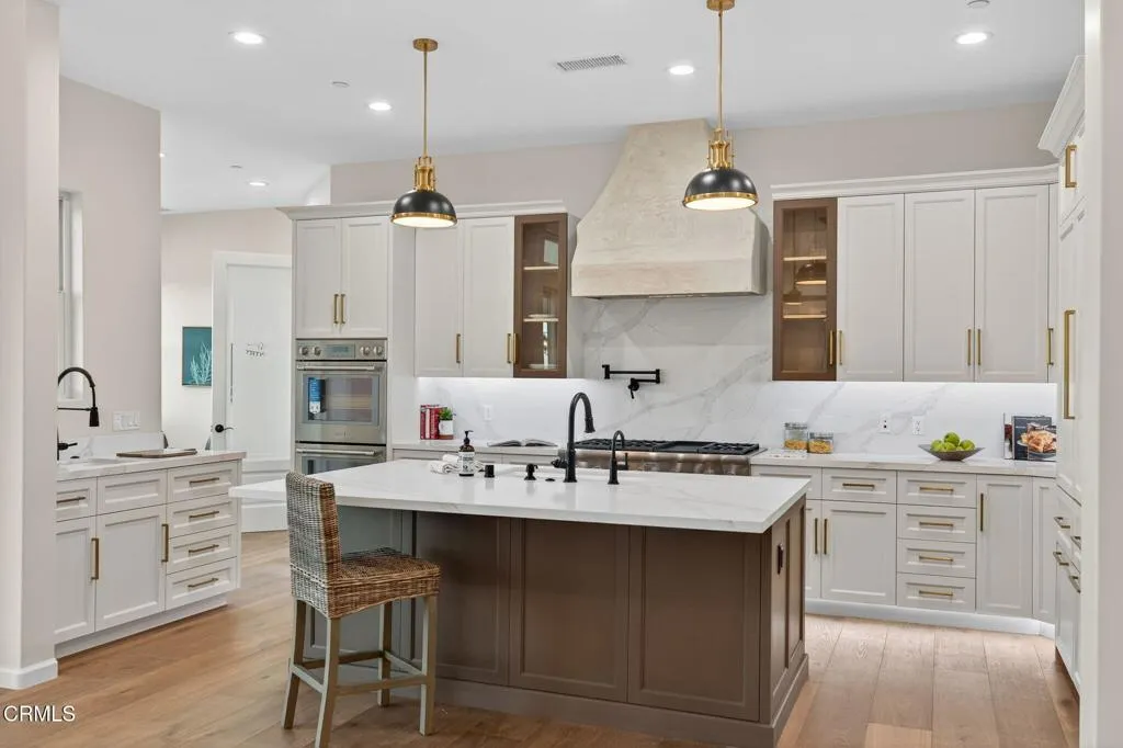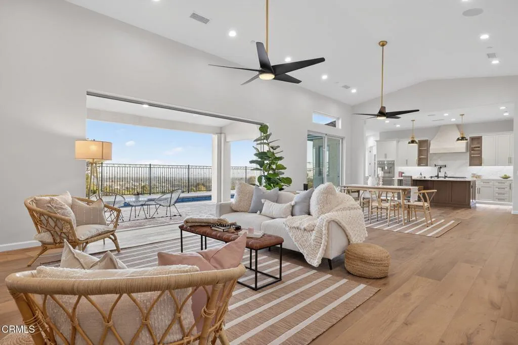Stunning new construction view home on the sought-after Ventura hillside! This custom build offers 4 bedrooms plus a media room, 3 full bathrooms, a powder room, and has approximately 3,710 square feet of living space - all on one level! Outdoor living with a pool and spa are a few more of the special features to enjoy. With a Mediterranean style, the home was thoughtfully appointed with French oak floors, Thermador appliances in the gourmet kitchen, and wine storage for casual collectors. The large great room with surround sound technology has high ceilings and sliding doors that incorporate indoor/outdoor living. A covered patio for entertaining is adjacent to the pool and spa. The outdoor space overlooks Ventura, providing sweeping ocean, island and sunset views to the north and west. Another feature of the home is that the back bedroom can be used as an ADU with its own entrance, kitchenette and laundry. Green features include owned solar panels and EV charging infrastructure.Come see the spectacular views to the ocean and Channel Islands.