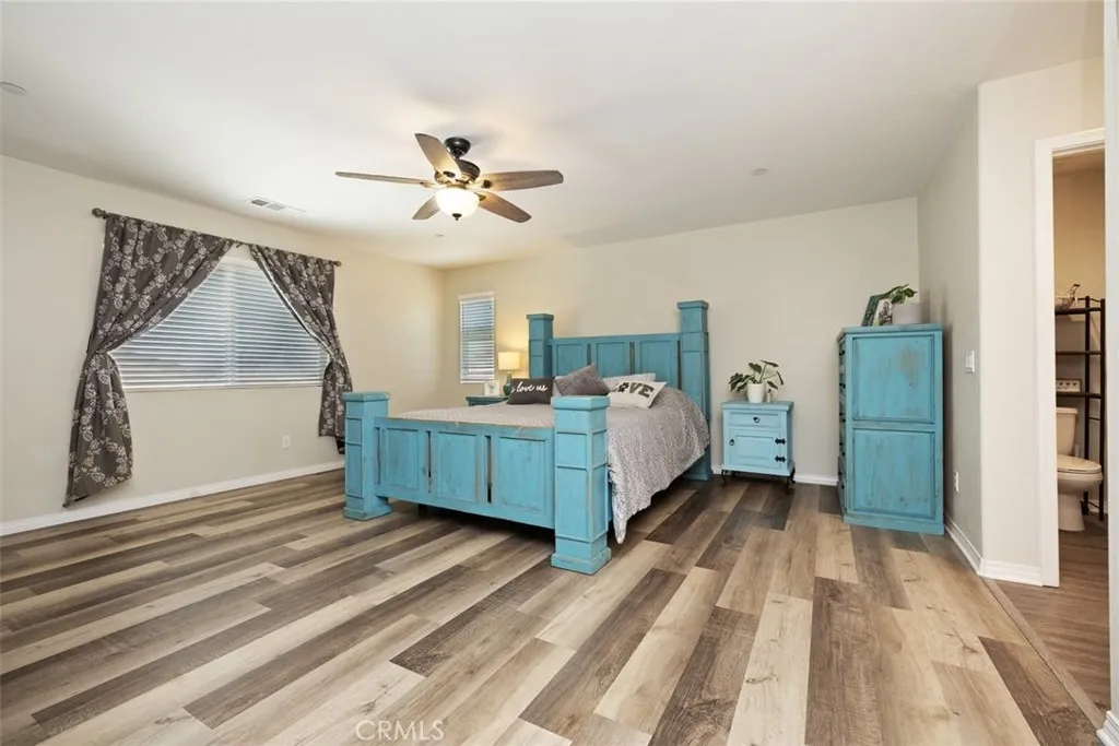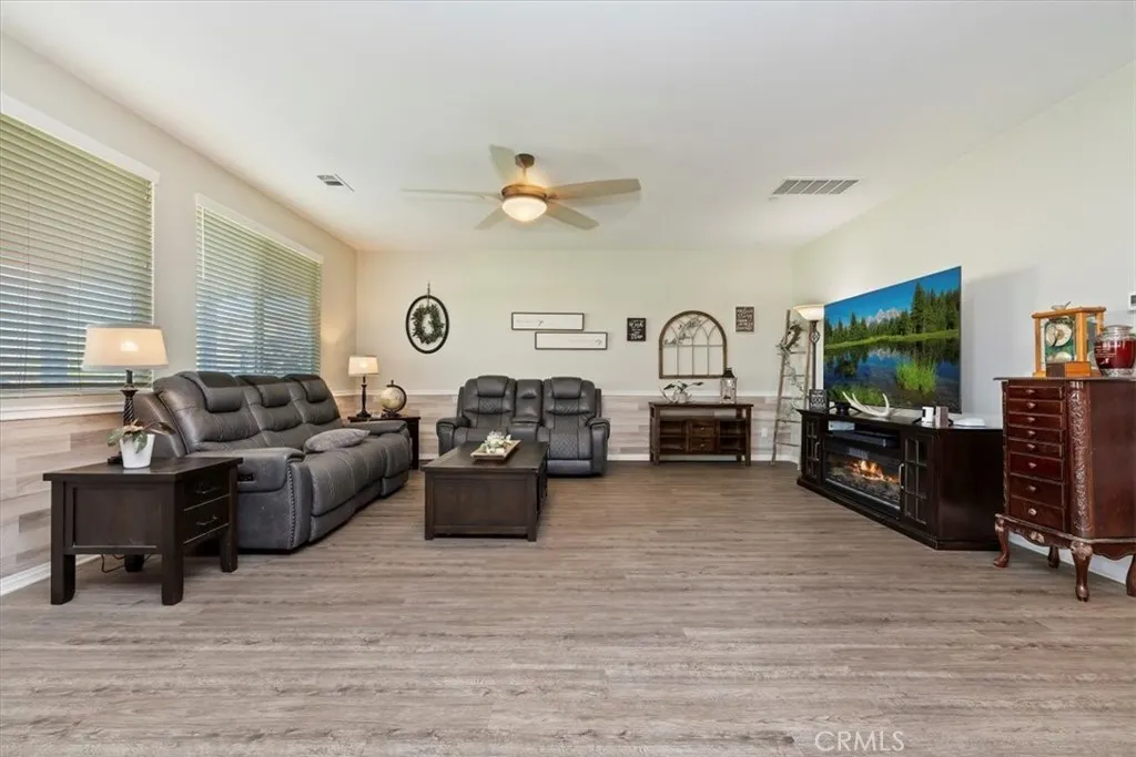 **Like a Model Home... this Wonderfully Upgraded 5 Bed/3 Bath Home is located on a quiet interior street within the Exclusive Gated Olivewood Community. *****FHA Loan is assumable and at a very low interest rate of 3.25%! Buyers may also qualify for a 15k down payment assistance loan that is forgivable over 5 years.***** The Most Desirable floorplan in the Neighborhood, this home features a Sought After First Floor Bedroom and Full Bath. Very Open Layout and High Ceilings and Natural Light create a comfortable space in the Family Room, Dining and Kitchen that feels Expansive! The Gorgeous Kitchen has been Upgraded with a Stunning Granite counter tops, Beautiful Stainless-Steel appliances, Walk-In Pantry and Large Island with Sink and additional Seating that Opens to the Family Room. Beautiful Laminate and Fresh Paint throughout the Home! Includes a Quiet Cool whole house fan that can dramatically reduce your A/C usage, plus fire sprinkler system and rain sensor sprinkler system cut-off. The spacious backyard is significantly larger than surrounding homes. It includes a Very Large Covered Alumawood Patio, Potential RV Parking, Tough Shed and High-End Hot Tub included. The Massive yard is lined with dozens of Fruit Trees, very large Artificial Grass space with built in drains... Perfect Space to Entertain all your Friends and Family! Olivewood Community features Amazing Amenities like Clubhouse, Pool, Gym, Parks, etc. Located minutes off the 10 & 60 FWY for and excellent commute location. Come Take a Look and Fall in Love!