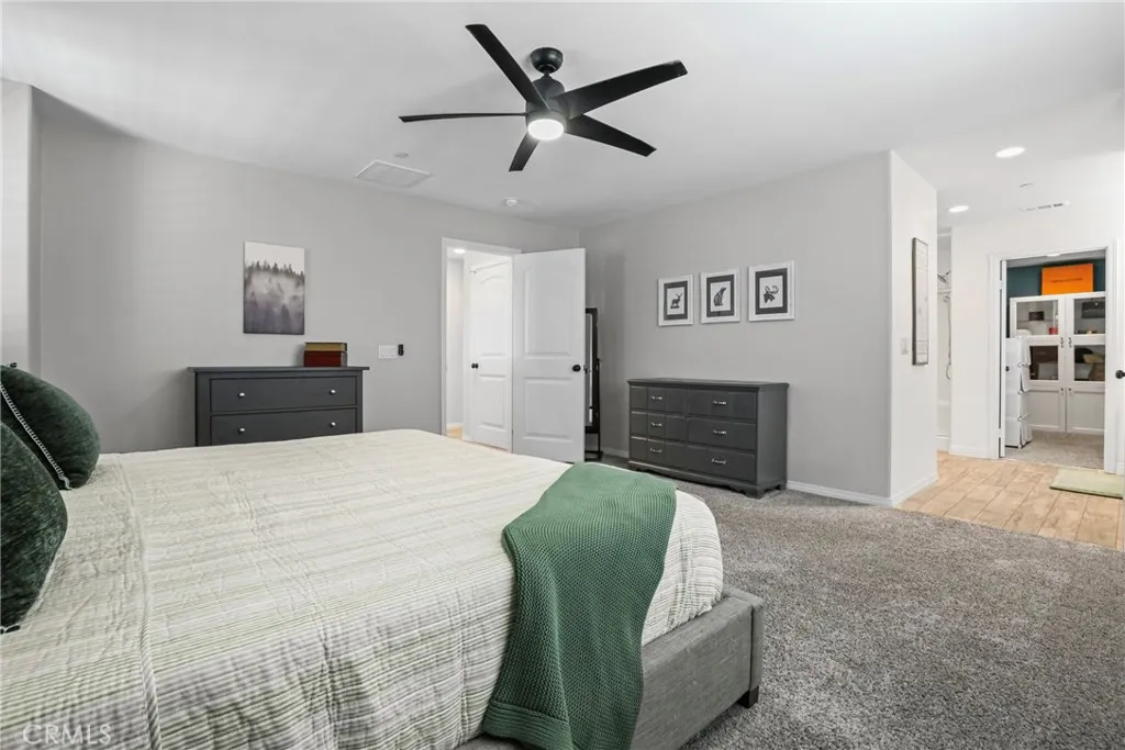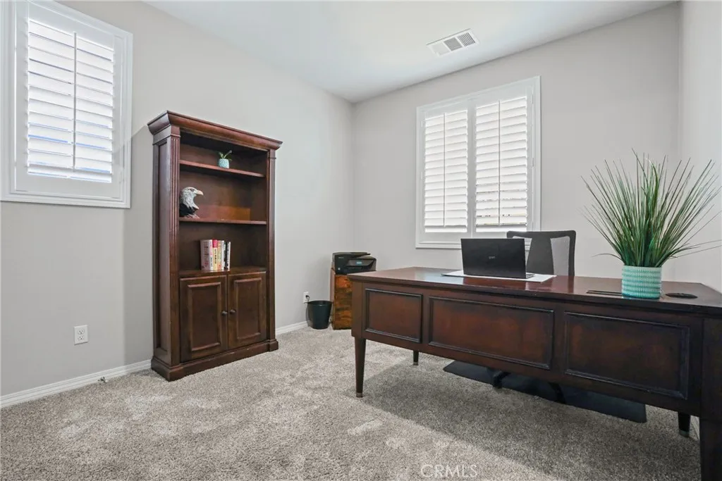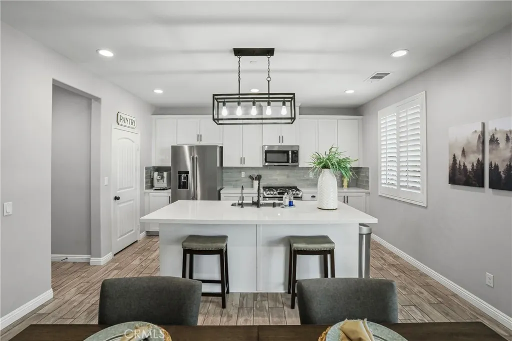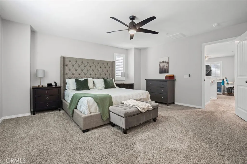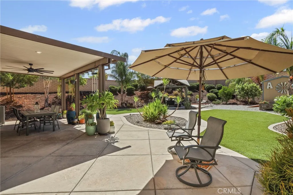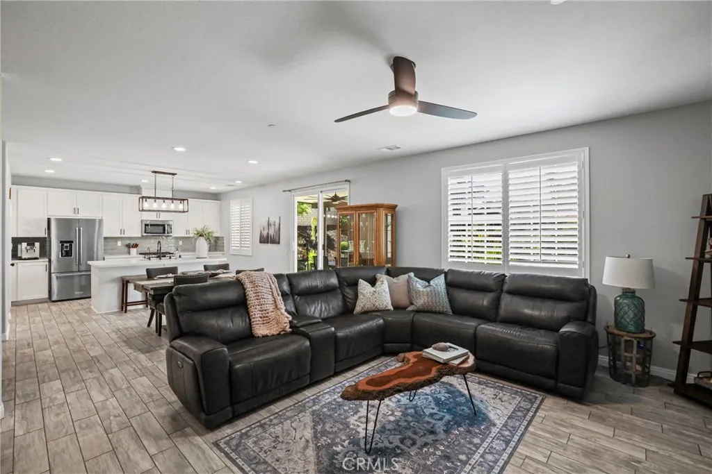 STOP SCROLLINGthis is the Menifee DREAM home youve been waiting for! Tucked inside the sought-after Camden Place at Menifee Town Center, this stunning 2021 Taylor Morrison beauty delivers it all: PAID OFF SOLAR, an OVER 1/3-ACRE lot oasis, and more than $100K in LUXURY UPGRADES designed for stylish living, epic entertaining, and everyday comfort. Offering 4 bedrooms, 3 full bathrooms, a SPACIOUS LOFT, and 2,257 sq. ft. of light-filled open-concept living, this home checks all the boxesand then some. The GOURMET KITCHEN boasts granite countertops, a custom backsplash, stainless steel appliances, a large walk-in pantry, convection oven, ultra-quiet KitchenAid dishwasher, and a generous island with bar seating. The living room flows seamlessly into the dining area and kitchenperfect for hosting family, friends, or the whole neighborhood. A main-floor bedroom with full bath is ideal for guests or MULTI_GEN living, while upstairs youll find three more spacious bedrooms and a versatile loft that can easily convert into a fifth bedroom. The primary suite offers a professionally designed closet, spa-style walk-in shower, and added ceiling fans for year-round comfort. Custom Plantation shutters, upgraded tile flooring, and a fully wired security system elevate both style and peace of mind. Step outside to your private entertainers paradisethree distinct outdoor zones (two covered), a powered gazebo, powered detached shed, and premium artificial turf. Enjoy poured concrete patios, a dog run, fruit trees, an automatic drip system, solar flagpole, side-yard shed, and 30-amp RV hookupwi