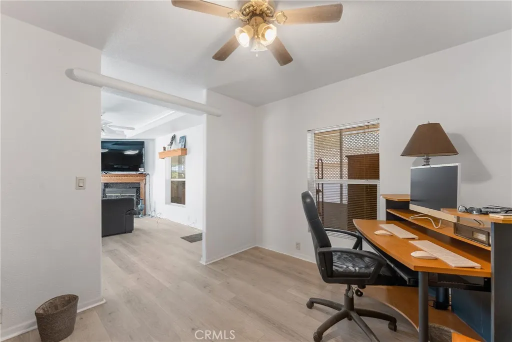 Welcome to the highly desirable 55+ Country Lake Community in San Jacinto! This beautifully updated 2-bedroom, 2-bath home with a den/office offers 1,248 sq. ft. of comfortable, move-in-ready living space designed for both relaxation and enjoyment. Step inside to discover brand-new laminate wood flooring throughout, plus fresh interior and exterior paint completed in recent months. The open floor plan features a cozy fireplace perfect for cool evenings and a spacious kitchen that flows effortlessly into the dining areaideal for entertaining family and friends. Exclusive Bonus Package The seller will include the refrigerator, stove, washer, dryer, microwave, desk, computer, and light fixtureat no additional cost. A flat-screen television will also be provided as a complimentary enhancement, elevating the comfort and elegance of your new home. Accessibility is another plus, with a wheelchair ramp at the entry for added convenience. The good-sized yard offers plenty of room for gardening, planting fruit trees, or creating your own outdoor sanctuary. Enjoy the enclosed bonus room for year-round use or the open patio perfect for gatherings and barbecues. Residents of Country Lake enjoy resort-style living with amenities that include: Scenic walking trail around the lake with shaded seating areas, Sparkling pool & relaxing jacuzzi. Clubhouse with an activity room, banquet hall, and full commercial kitchen. RV parking available for residents. Conveniently located near shopping, dining, and with easy access to the Ramona Expressway, this home blends comfort, convenience, and commun