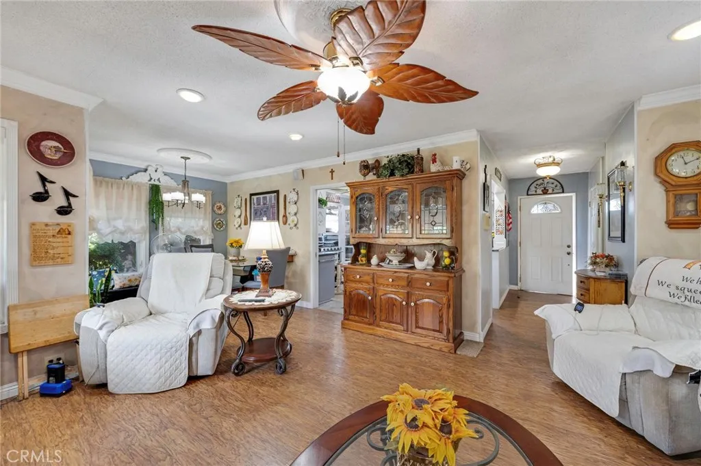 A Wonderful cozy home just 10 minutes from Disneyland in great move in condition. Open and airy floor plan. Large living & dining room combination with recessed lighting crown molding, custom Ceiling fan and newer flooring along with a Cozy wood burning fireplace plus an oak hardwood mantle. Be that culinary chef, youve dreamed of in a Spacious kitchen layout with new blue coral Granite countertops & backsplash with newer stainless steel Double sinks With high arch sprayer nozzle faucet, Double oven range and newer Tile flooring in kitchen & Throughout laundry and half bath area. Crown molding Ceiling fans. Quality double pane low E windows throughout the whole house. Upgraded remodeled master bathroom with jetted bathtub remodel half bath. Brand new water heater. Spacious master bedroom with access to the backyard patios. bedrooms have wardrobe closet areas. Open laundry room with great natural lighting is inside by the kitchen area. Extra large front and backyards ,Three large storage sheds on grounds. Gorgeous covered patio pergola coverings on east and west side of house for cooling and shade. Beautiful Front & back yards with artificial turf for low maintenance and year round beauty. attached garage with access to side yard and additional shed storage. Automatic dusk, till dawn outside lighting. Large driveway for extra parking or RV access. Walking distance to Edison Elementary School & Sycamore junior high plus Easy walking to Grocery store and Starbucks. access to shopping centers and easy 91 & 57 Freeway access. Wonderful home to see.
