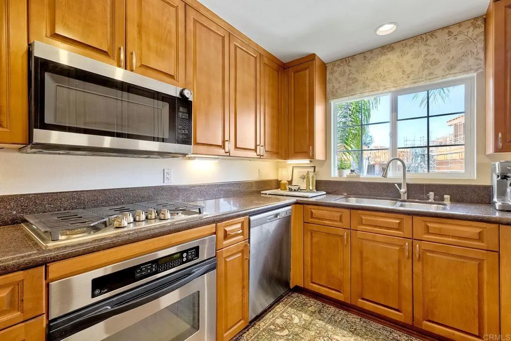Your sunlit Coastal La Costa retreat awaits in this immaculate end-unit townhouse! Turnkey home has a wide-open living space with breakfast bar, windows on three sides, and a lovely balcony off the dining area. Beautiful wood flooring, plantation shutters and soaring high ceilings. Chef's kitchen with wood cabinets, granite counters, gas cooktop, and stainless-steel appliances. A full bed and bath on each of the three stories affords for exceptional privacy. Spacious top level primary suite features a view deck, dual bathroom sinks, custom travertine jacuzzi tub with enlarged stone shower and walk-in closet. Large first floor ensuite bedroom and bathroom includes a walk-in closet. This meticulously maintained corner home enjoys an abundance of natural light and has only one attached wall, which was built to include extra sound proofing insulation. Central air conditioning and the HVAC unit has been updated. Direct secure access through the attached 2-car garage with epoxy flooring. Garage laundry area has a utility sink with extra storage. The Meadow View Townhomes has a total of 11 condominiums with low monthly HOA dues. Minutes from La Costa Heights Elementary School and zoned to the San Dieguito Union High School District. Convenient location off La Costa Avenue. Close to shopping, beaches, hiking trails, restaurants and the world-famous Omni La Costa Golf Resort & Spa. *Fully furnished option is available per inventory list. A rare opportunity to experience the La Costa lifestyle!!!