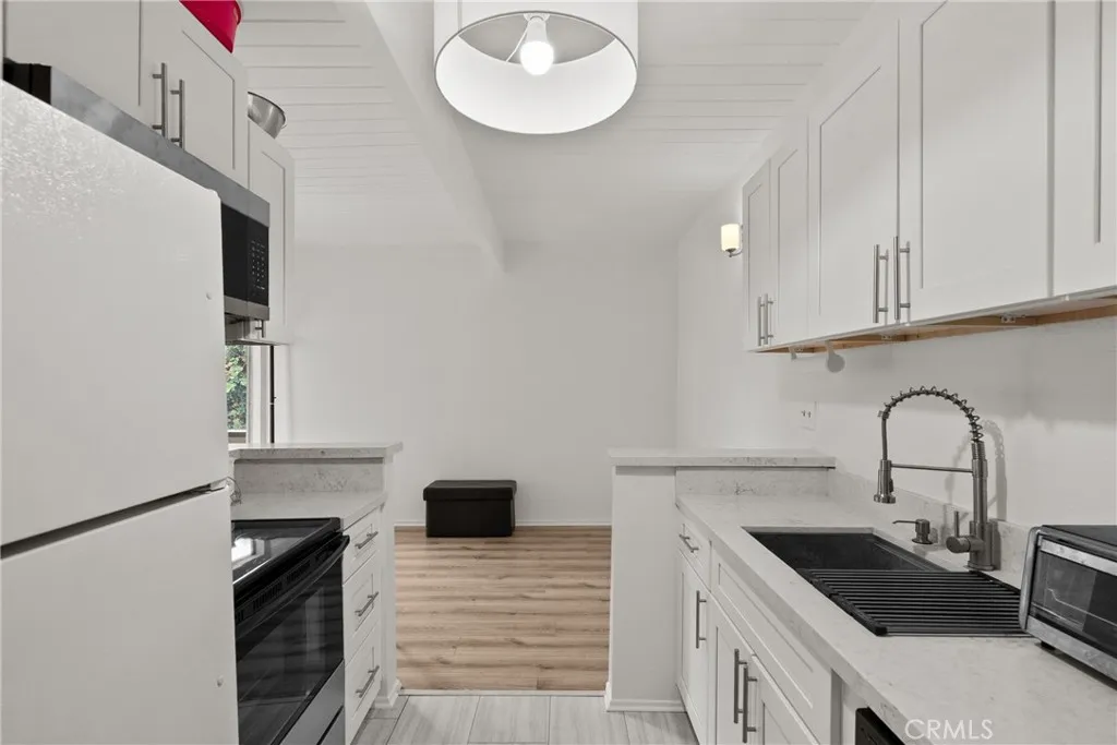 RARE level of privacy in condo living -- END UNIT with NO ONE ABOVE OR BELOW, offering a quiet, peaceful retreat in the heart of Valley Village. Light and bright with high ceilings, the space feels open and inviting. Recent updates include fresh paint and newer laminate flooring. The living room opens to a private balcony and connects seamlessly to a cozy dining area. Remodeled kitchen features granite countertops, newer cabinetry, stainless steel appliances including a brand-new oven (installed August 2025), stainless steel dishwasher, and newer microwave. Down the hallway, the bedroom is located next to the tastefully updated bathroom which features a skylight. Low monthly HOA dues include a refreshing community pool, as well as fire and earthquake insurance. There is a dedicated parking space beneath the unit, along with two private storage cabinets, and just steps away is the community laundry. Located on a quiet residential street, yet close to freeway, shopping, and dining, this home combines modern comfort and unbeatable convenience. Dont miss this unique opportunity!