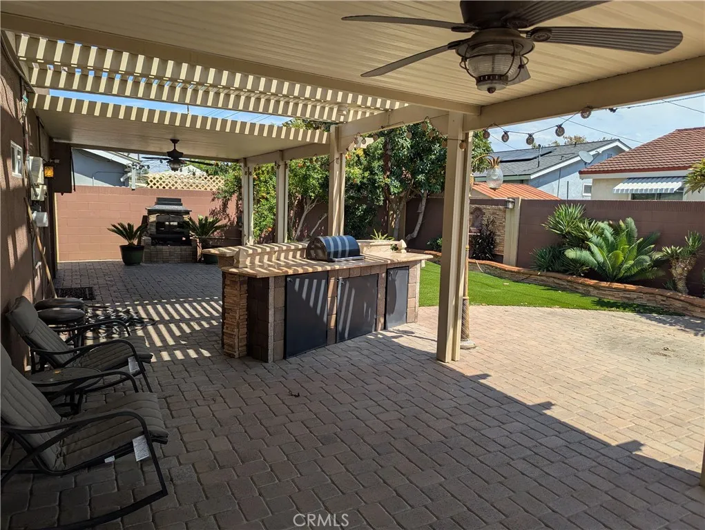 Welcome to this spacious single-family home in beautiful Cypress, California. This spacious 4-bedroom, 2.5-bathroom home offers over 2,100 sq. ft. of living space on a 6,000 sq. ft. lot including a double car garage. The inviting floor plan includes a large living room with recessed lighting, crown molding, and laminate wood flooring. The upgraded kitchen features tile floors, granite countertops, custom cabinetry, a breakfast bar, and its open to the dining area for easy entertaining. Upstairs, youll find generously sized bedrooms, including a primary suite with ample closet space. The backyard is a highlight in itself, it's perfect for hosting. The patio cover has two fans and runs across the house providing lots of shade. There is a built-in bar and grill area for entertaining, and an outdoor wood fireplace for those cooler nights. This low maintenance backyard also includes a brick layout and a turf lawn for that green look all year long. Let's not forget about the pomegranate tree and avocado tree providing fresh fruit and a touch of natural beauty. Additional highlights include solar panels, synthetic turf, and central air and heating. Located in a desirable Cypress neighborhood, this home is close to award-winning schools including Cypress College, beautiful parks, shopping, and dining, offering an excellent opportunity to own in one of Orange Countys most sought-after communities. Don't miss out on this opportunity!