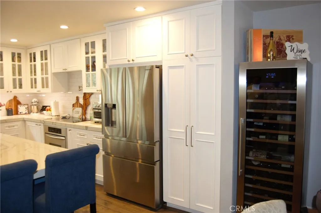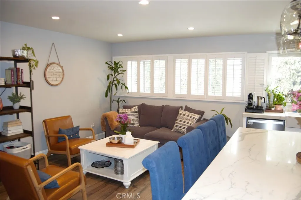 This exceptional townhouse, situated in the highly sought-after Encino Village community, offers 3 Bedrooms & 2.5 Bathrooms. Located in the quiet side of the complex, near one of the pools areas, but distanced enough for a serene living experience. Private patio entry, welcomes you into the first living space with a beautiful fireplace, sliding door & high ceilings to combine indoor/outdoor living. A few steps up lead to an all-integrated modern style recently remodeled dinning-kitchen-family area. The gourmet kitchen is a chef's delight, top-of-the-line stainless steel appliances, new custom cabinetry and sleek quartz countertops. Kitchen and Family Room area with recessed lighting throughout and plantation shutters, an oversize isle also with quartz countertop perfect to enjoy meals or entertain guests, wet bar and a guest bathroom. The property has wood floors throughout. On the upper floor, there is a large master bedroom with a high ceiling, wall to wall closets and a recently remodeled master bathroom. Additionally, there are two more bedrooms that share another bathroom. Two private attached garage w/direct access to the townhouse, plus a washer & dryer & plenty of room for storage. The community itself offers fantastic amenities, including two swimming pools, two spas, two racquetball courts, a club house, sauna and fitness equipment all set in a beautifully landscaped, park-like environment on over 5 acres, and generous amounts of visitor parking make this a wonderful place to call home. Prime location, walking or biking distance to the Metro station. Located on th