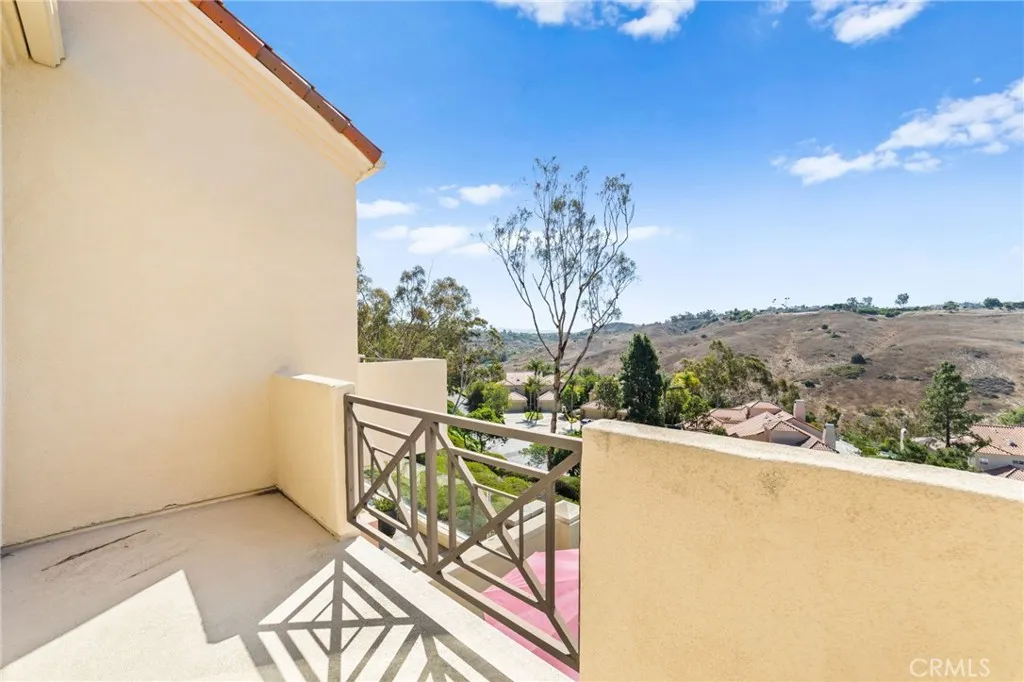 With a recent total price reduction of $75,000 this home offers the best value in the Siena Community. PRICED to SELL! STUNNING PANORAMIC VIEW HOME in Siena, Marina Hills! Perched high on one of the most desirable streets in this gated neighborhood, this home enjoys sweeping canyon views and distance ocean from both the ground floor and the upstairs balcony. The flexible floor plan includes 3 bedrooms (with the downstairs bedroom currently used as an office) and 3 full bathrooms. A private front courtyard leads to the double door entry, opening to soaring ceilings, formal living and dining rooms, and walls of windows designed to capture the picturesque canyon scenery. The spacious kitchen is equipped with double ovens, built-in microwave, gas cooktop, pantry with pull-out shelves, breakfast bar, and casual dining area with views. Upstairs, two bedrooms each feature private full bathrooms. The primary suite stands out with vaulted ceilings, dual walk-in closets, spa-style bathroom with jetted tub, separate shower, dual sinks, and a private balcony perfect for enjoying the serene canyon backdrop. Additional highlights include a two-car garage with storage, a laundry room with sink and cabinetry, a 4-ton furnace/AC, and a tankless water heater. The backyard is ideal for entertaining, with a flagstone-accented patio and clear-view fencing to fully take in the vistas. Residents of Siena and Marina Hills enjoy resort-style amenities such as pools, spa, tennis and pickleball courts, sport courts, and scenic walking paths that lead directly to Salt Creek Beach