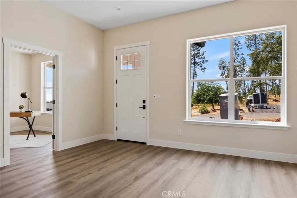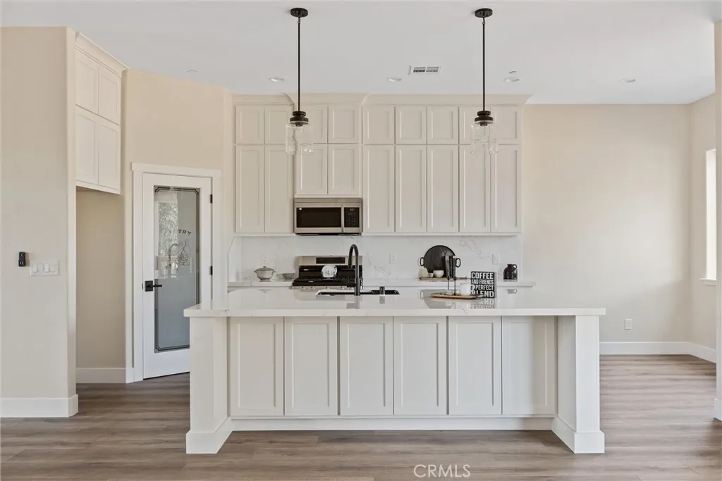 This meticulously crafted new build showcases exceptional attention to detail and offers an open-concept floor plan designed for both everyday living and entertaining. The spacious layout is bathed in natural light, creating a welcoming atmosphere throughout. The gourmet kitchen is a true highlight, featuring 10-foot cabinets, sleek quartz countertops, a generous island, smart appliances, and a walk-in pantry with custom cabinetry perfect for culinary enthusiasts. High ceilings (10 feet throughout and 9 feet in the bedrooms) enhance the homes airy, expansive feel. Both bathrooms are beautifully appointed with elegant tile flooring, with the primary suite offering a luxurious retreat. This suite features a walk-in closet, dual-sink vanity, and a spa-like walk-in shower. The home is also equipped with an efficient drip irrigation system in the front yard, ensuring easy maintenance and water conservation. For peace of mind, the property boasts an excellent drainage system, designed to protect the foundation and ensure proper water runoff. Additionally, the home comes with owned solar panels, providing energy savings and sustainability. Step outside to the inviting deck, ideal for enjoying a morning coffee or unwinding with an evening sunset. This home is a must-see to fully appreciate its quality craftsmanship, modern amenities, and thoughtful design.