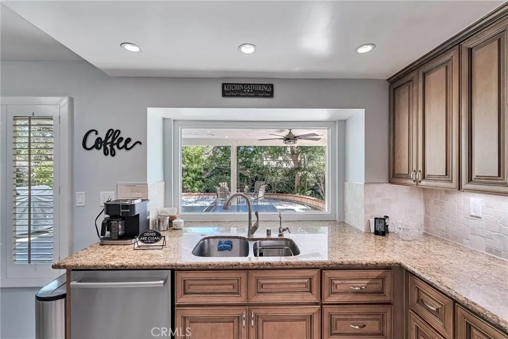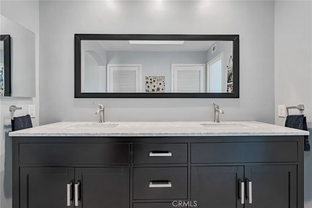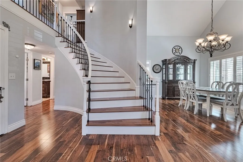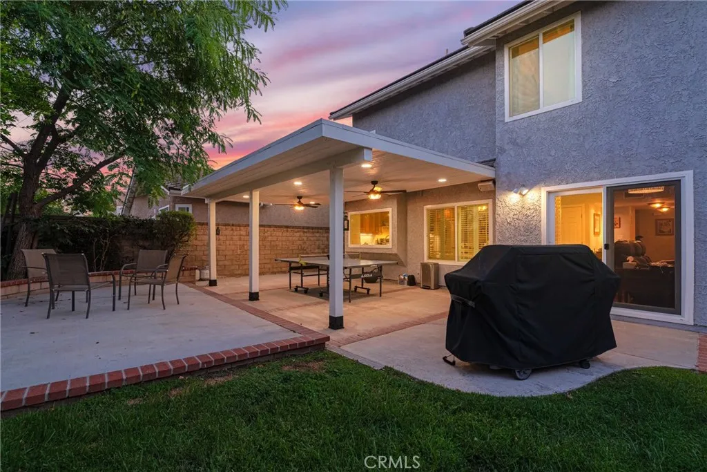 Perfectly situated on a private cul-de-sac in the desirable Heritage community, this beautifully renovated Westport model is just steps from award-winning Valencia Valley Elementary. A pristine exterior and custom leaded-glass entry set the stage for the stylish updates inside. The kitchen is the heart of the home, showcasing raised-panel cabinetry, granite counters, a striking new backsplash, pantry, and tile flooring. It opens seamlessly to the inviting family room with an upgraded fireplace and recessed lighting. Formal living and dining rooms feature vaulted ceilings, a sweeping staircase, and abundant natural lightideal for gatherings. A downstairs bedroom with adjacent remodeled bath offers flexible living or office space. Upstairs, the primary suite boasts a warm brick fireplace, spacious walk-in closet, and spa-like bath with a freestanding soaking tub, dual vanities, and glass-enclosed shower. Two additional bedrooms share a remodeled Jack-and-Jill bath, while the convenient upstairs laundry (rare for this floor plan!) adds everyday ease. Additional upgrades include 8mm engineered hardwood flooring, all-new fixtures, refinished bannisters with iron balusters, and upgraded 10-inch HVAC ductwork for enhanced airflow. Outdoor spaces are equally impressive, featuring new hardscape, a covered patio with recessed lighting and ceiling fans, plus a three-car garage with epoxy floors and built-ins. Plantation shutters, dual-pane windows, copper plumbing, and a newer HVAC system add lasting value. The HOA offers low monthly dues with access to three community pools and spas,