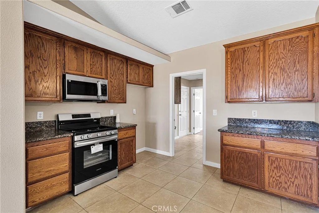 Welcome to this gorgeous 5-bedroom, 4-bathroom home, just under 3000 sq. ft. of single-level living on a generous 44,866 sq. ft. fenced lot in Hesperia. This property boast a split floor plan, perfect for modern living. The kitchen features granite countertops, built-in appliances, and a convenient walk-in pantry. Separate Family Room w/ Fireplace. Formal Dining, Formal Living Room & Breakfast Nook. This home also offers two primary bedrooms with adjoining bathrooms. Indoor Laundry & three car garage, as well. Additionally, the expansive lot provides for a potential ADU ( Additional Dwelling Unit), making this property an excellent choice for multi-generational living. Commuter Close. This Beautiful Home has recently been painted and new carpet installed and is ready for you to move right in!
