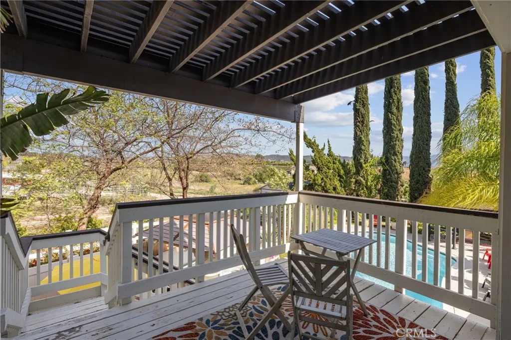 Nestled in the heart of Temecula Valleys Wine Countryjust a half mile from the famed Rancho California Wine Trailthis expansive 6-bedroom, 5.5-bathroom estate offers a rare blend of rural tranquility, modern upgrades, and multi-generational living potential. Spanning 4,166 sq ft, the thoughtfully reimagined layout includes a versatile lower-level conversion, transforming the former California walk-out basement and garage into two fully renovated guest suites with en-suite baths and a laundry room with an added half bathideal for guests, extended family, or income potential. Set on a private, fenced, and gated lot, the property boasts two Tesla EV chargers, and a 400A electrical serviceall supporting sustainable living. Outdoor features include a saltwater pool (converted in 2019 with a new salt cell in 2024), outdoor shower, pool safety fencing, and space to entertain under a 2022 Alumawood patio cover. For the equestrian or hobbyist, theres a 4-stall barn, storage shed, and ample flat land for a future garage, ADU, pickleball court, or workshop. With three RV hookups (each with 50A electric, water, and septic tie-in to a 1,500-gal tank), parking for 20+ vehicles, and dual septic systems, this property is truly built for flexibility and future expansion. Recent upgrades include 2 new HVAC zones, dual tankless water heaters, reverse osmosis drinking water, high-efficiency mini-splits, soundproofed guest suite, and numerous infrastructure improvementsall completed between 2018 and 2025. Whether you're seeking a peaceful retreat, a multi-gen solution, or a luxury compound with