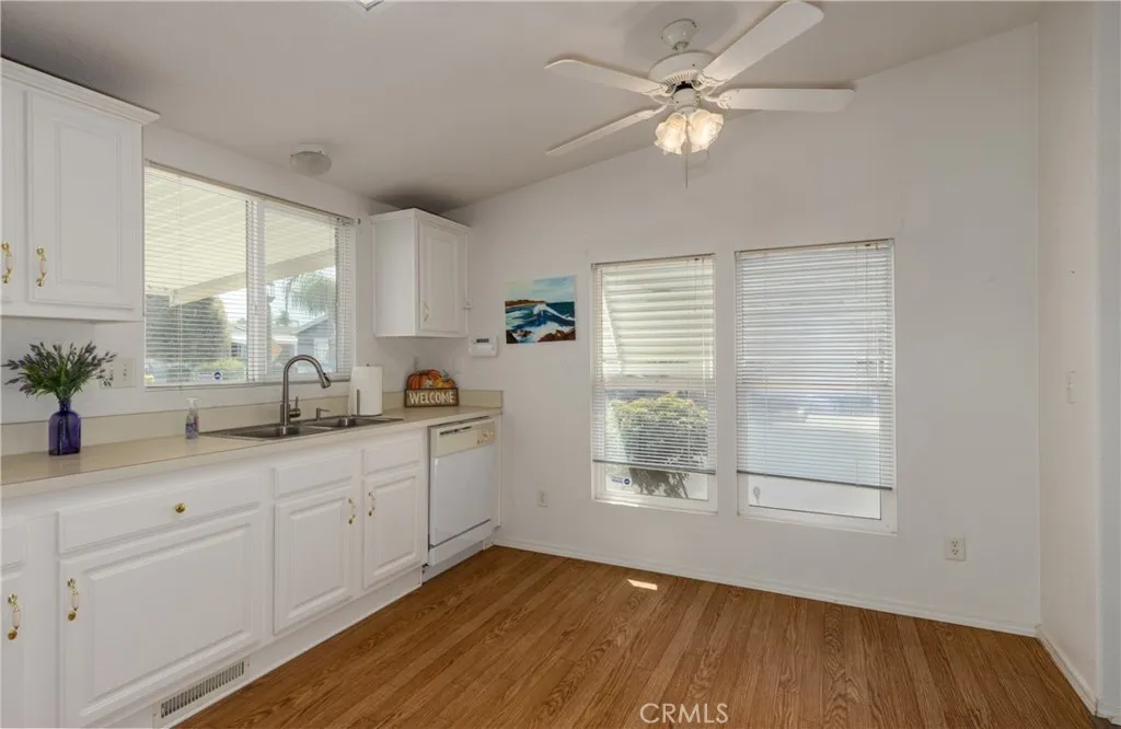 If you're looking for a 3 bedroom home in the desired gated community of Foothills of Hemet, this one is a must see. Large light & bright kitchen has lots of cabinets, and there is plenty of room for your dining table. And wait to you see the size of the living room. Laminate flooring for easy care, and then carpet in the bedrooms. Spacious primary bedroom with walk-in closet, and the primary bathroom has dual sinks and a full size step-in shower. The two guest bedrooms are good sized located across the hall from the bathroom with shower in tub. Inside laundry room with storage on both sides. Covered full length porch. Yard is fenced for your furry friend & there is even a doggie door next to the front door. Park amenities include 2 swimming pools, spa, pickleball courts, air-conditioned shuffle board court, exercise room recreation hall w/kitchen, and rooms to enjoy billiards, cards & crafts. Ask about the park's RV parking area. Commuter friendly, and close to shopping & restaurants.