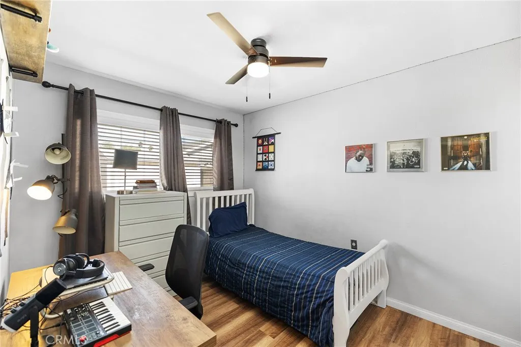 Welcome to this fabulous single-story home offering 3 bedrooms and 1 bath. Inside, the home features beautiful laminate flooring throughout, with tile flooring in the kitchen and dining area for style and durability. The delightful kitchen comes with granite countertops and lots of cabinet space. The living room is enhanced with plantation shutters for a touch of elegance. The remodeled bathroom adds modern comfort, while the homes overall charm makes it move-in ready, with plenty of potential to customize further. Large back yard comes with a covered patio and a firepit, perfect for entertaining. This home is situated on an expansive lot, which provides endless possibilitieswhether you envision adding a pool, expanding with a room addition, or creating an ADU for extra income, or multigenerational living. Nestled on a picturesque street lined with mature trees, this property offers a serene neighborhood feel while still being close to local conveniences. A wonderful opportunity for a first-time buyer, investor, or anyone looking for a home with future growth potential! This home is conveniently located and close to schools, shopping and the 91 freeway. Home also comes with a very low tax rate.