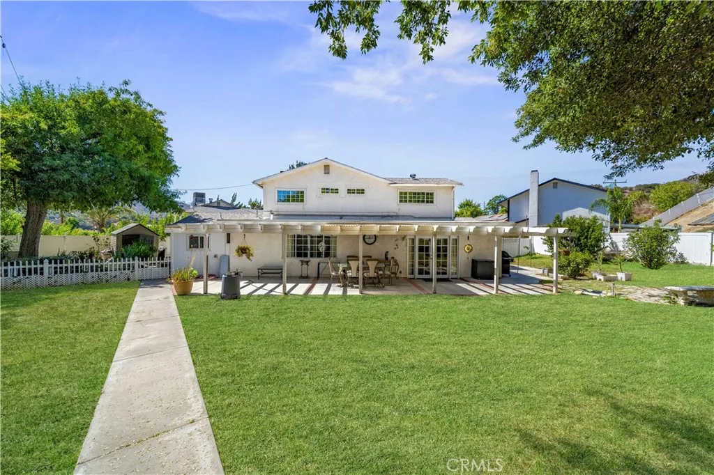 A RARE Find with Space, Privacy, and Endless Possibilities. One-of-a-Kind 5 bedroom 3100 sf two story gem privately hidden on a cul-de-sac on more than 1/3 of an acre with a grassy flat, fenced yard just a short drive north of the greater Los Angeles area. This treasure of a neighborhood has tremendous value - where you can get a large house and a huge lot for a fraction of the cost that it would be just 10 miles to the south - with convenient access to the 5 and 14 freeways, Old Town Newhall, schools, area parks, shopping, Magic Mountain, golf courses, etc. The backyard is truly the centerpiece of this property private, peaceful, and backed by open hillside with no neighbors looking in. Theres room to run and play - kick a soccer ball or throw a football - shaded spots to relax, and plenty of space for entertaining. With 16 varieties of fruit trees, a vegetable garden, a patio, and even a swing under a mature shade tree, its a yard that invites everyday comfort and enjoyment as well as large gatherings. Inside, the layout offers flexibility for multi-generational living or work-from-home needs. Accessibility has been thoughtfully considered, with the downstairs fully wheelchair-friendly and features an oversized Primary En-suite with its own living area, full bath w/walk-in closet, and private side yard access (ideal for in-laws, guests, or a potential ADU conversion). Upstairs, youll find 4 more bedrooms, including a second Primary En-suite tucked away on the backside of the house with yard & hillside views and a full bath with jetted tub and granite counters. Notable up