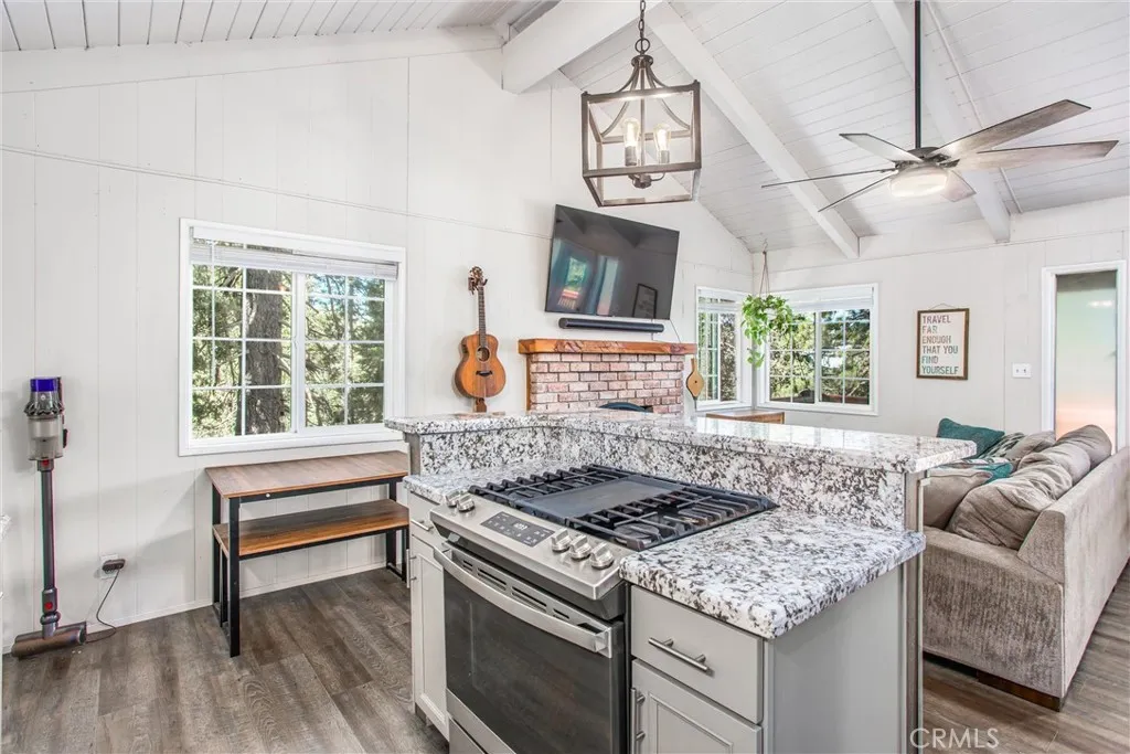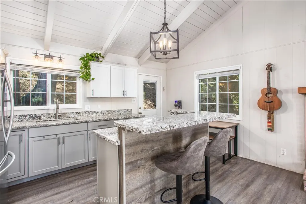 Welcome to your dream retreat in the heart of Crestline! Nestled among the towering pines, this beautifully updated mountain home blends rustic charm with modern comfortjust minutes from the sparkling waters of Lake Gregory. Inside, youll find warm wood-beamed ceilings, abundant natural light, and cozy living spaces designed for relaxation. A charming brick fireplace anchors the living room, creating the perfect spot to gather after a day of mountain adventures. The kitchen has been tastefully updated with stylish cabinetry, granite countertops, and a spacious breakfast barideal for both everyday living and entertaining. The home offers multiple comfortable bedrooms, updated flooring, and brand-new carpet installed in November 2024. Step onto the decks to enjoy serene forest views with your morning coffee, or retreat indoors with fiber internet connectivity that makes working from home or streaming a breeze. The sellers have thoughtfully invested in major upgrades to ensure this home is truly turnkey. The chimney was fully rebuilt with a new liner, damper, and cap, and flashing at the roof spine was replaced in 2023. The driveway wall was rebuilt and expanded by 2 feet with 4-foot deep footings, creating lasting stability and a rare bonus in Crestlineample parking! Additional improvements include fresh exterior paint on the staircase and balcony, plus the home is wired for fiber internet.Two outdoor storage sheds provide extra room for gear, and the washer, dryer, and refrigerator are included with the saleno heavy lifting required. Located in a peaceful setting yet only mi