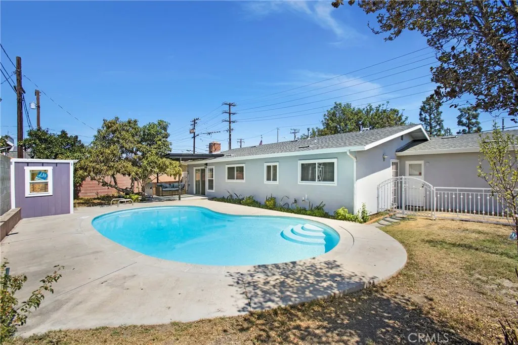 This beautifully remodeled 4-bedroom, 2-bathroom single-family home offers privacy, space, and modern living with the unique option of both residential and commercial use. The versatile floor plan features three distinct living areas, ideal for multigenerational living, a home-based business, or rental income. The brand-new kitchen shines with quartz countertops, custom cabinetry, stainless steel appliances, and a stylish backsplash. An open-concept design is enhanced with waterproof hybrid resilient luxury vinyl plank flooring, an upgraded fireplace with hidden LED lighting, and fresh interior and exterior paint. All rooms are equipped with ceiling fans for comfort and energy efficiency, and the laundry area is conveniently located in the garage. The backyard is built for entertaining, showcasing a resurfaced pool, covered patio, mature citrus trees, and full block wall fencing for privacy. Situated on a 7,215 sq. ft. lot, the home provides approximately 1,418 sq. ft. of thoughtfully designed living space. Additional highlights include dual-pane windows, aluminum tile roofing, and a two-car garage with dual side-opening doorsoffering extended space for parking, a boat, or a trailer. Conveniently located near shopping, dining, and major freeways, this move-in-ready property seamlessly blends residential charm with commercial versatility, presenting a rare opportunity to live, work, and invest all in one.