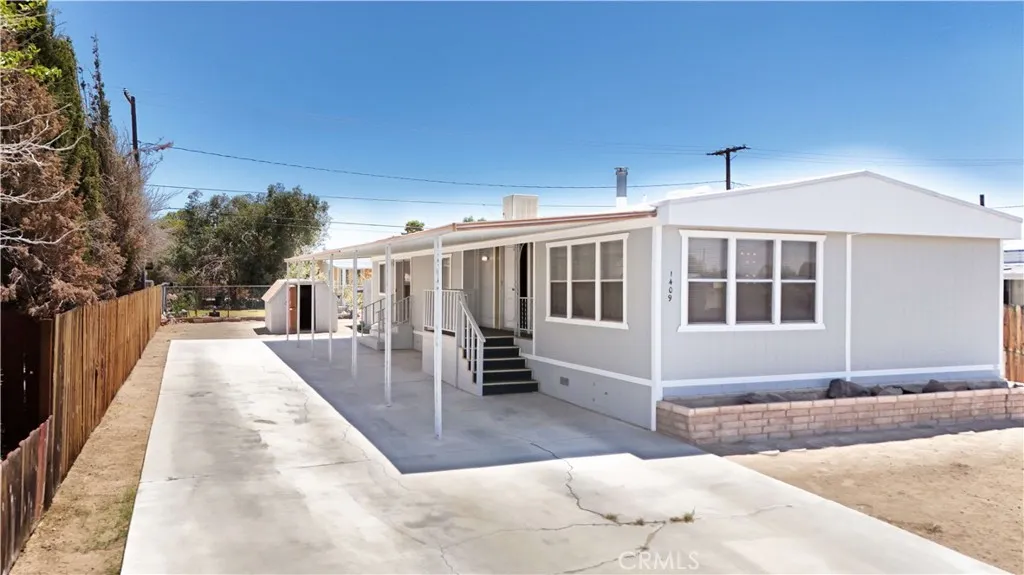 Seller is extremely motivated to sell. All offers will be considered. Welcome to 1409 W Upjohn Ave in Ridgecrest! This charming 3-bedroom, 2-bathroom home offers 1,440 sq ft of comfortable living space on a generous 6,534 sq ft lot. Step inside to find fresh new flooring, a bright, inviting layout, central heating, and a cozy pellet stove in the living room for added warmth and ambiance. The kitchen boasts a brand-new stovetop, while the home is equipped with a recently installed water heater for peace of mind. Outside, the property shines with all new siding, fresh exterior paint, beautiful window borders, and new window screens that enhance both curb appeal and efficiency. The backyard is designed for both work and play, featuring two powered storage shedsperfect for projects, hobbies, or extra storageas well as a newly built balcony to enjoy outdoor living. A 433A permanent foundation was recently completed, making the home financeable through standard loan programs. With all city services connected, youll have reliable utilities at your fingertips. This well-cared-for home blends updates with charm, offering a move-in-ready option in a convenient Ridgecrest location.
