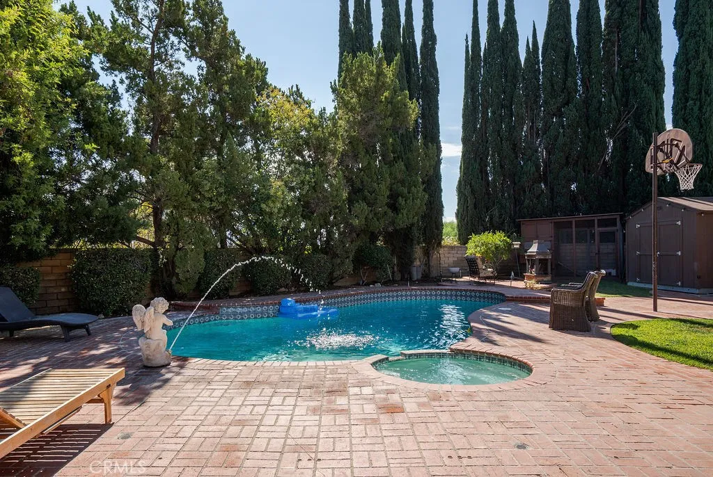 This beautifully updated Valencia home is designed for comfort, convenience, and California living. Offering 5 bedrooms and 3 full baths across 2,289 sq. ft., it sits on a generous 10,256 sq. ft. lot with a sparkling pool and plenty of outdoor space. The bright, open layout is highlighted by vaulted ceilings, a cozy fireplace, and versatile living areas perfect for entertaining or relaxing. The kitchen features ample cabinetry, quartz-style counters, and easy flow to dining and family spaces, while multiple sliders and a covered patio make indoor-outdoor living effortless. Upstairs bedrooms provide plenty of flexibility for families, guests, or a home office. The primary suite includes direct access to outdoor space, with potential to create a sunny retreat or caf-style nook. Practical features include a 2-car attached garage, fenced yard with 2 Tuff sheds, central cooling and back up generator. The neighborhood of Valencia is known for its rolling terrain, family-friendly atmosphere, and excellent schools within the William S. Hart Union High and Newhall School Districts, including Foothill High. Community highlights include parks, shopping, dining, and convenient freeway access. This is a rare opportunity to own a spacious home with both character and potential in one of Valencias most sought-after areas.