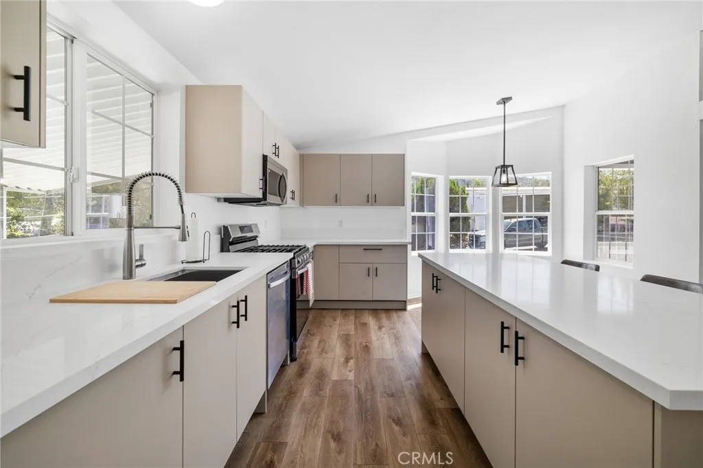 Welcome to 23777 Mulholland Spc 108, a beautifully updated manufactured home in the heart of Calabasas, within the Desired Calabasas Village. Built in 2004newer than most homes in the community, which date back to 1975this residence stands out with its modern design and extensive renovations. Offering 3 spacious bedrooms, 2 bathrooms, and approximately 1,800 sq ft of comfortable living space, the home blends functionality with style. Step inside to find soaring cathedral ceilings with atrium windows that flood the home with natural light. The completely remodeled kitchen features granite countertops, stainless steel appliances, custom cabinetry, and a generous breakfast island with seating, creating the perfect space for both casual meals and entertaining. A formal dining area adds elegance for gatherings and special occasions. The expansive primary suite is a true retreat, boasting dual walk-in closets, a luxurious jetted soaking tub, and a separate walk-in shower. Additional bedrooms are well-sized, offering flexibility for family, guests, or a home office. Outdoors, the inviting front deck is the perfect spot to enjoy a peaceful morning coffee or relax in the evening while taking in beautiful sunsets. Combine that with Community Amenities including but not limited to Olympic size pool and Spa, Multiple Tennis Courts, indoor gym, library, rec center, bbq/picnic areas, playground and a dog park. Land lease includes all the community amenities, on site security, water, sewer, trash, cable tv. With its rare combination of modern construction, thoughtful upgrades, and a prime