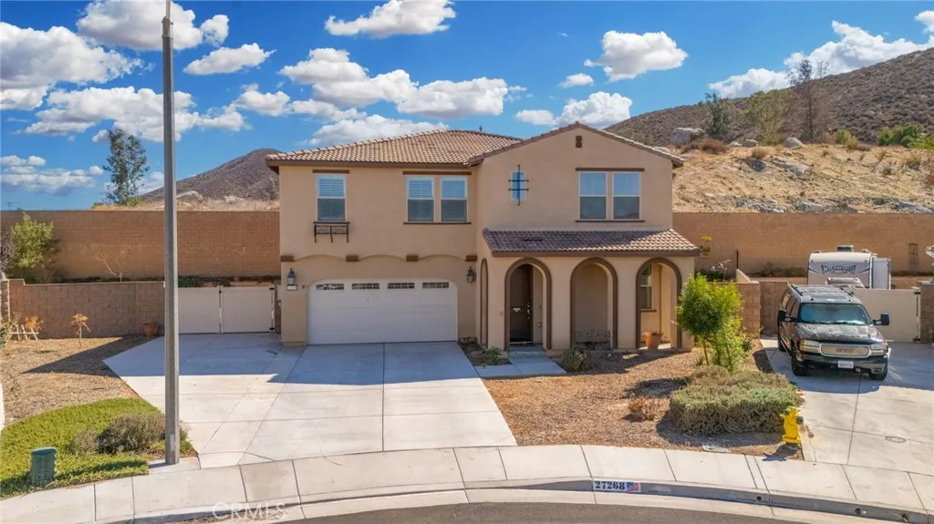RV Parking & No HOA! Welcome to this beautiful home in Menifee, offering the perfect blend of style, space, and convenience. The first thing youll notice is the stunning curb appeal and inviting front courtyard, perfect for relaxing evenings outdoors. Inside, youll love the open floor plan with luxury vinyl flooring, a spacious great room with a cozy gas fireplace, and a chefs kitchen featuring granite counters, stainless steel appliances, double ovens, rich cabinetry, and a huge breakfast bar for family and friends to gather around. The main floor includes a private guest suite, while upstairs youll find the luxurious owners suite with dual sinks, oversized shower, and views of the hills. Secondary bedrooms are generous in size and connect to a versatile loft ideal for a home office, gym, or media room. Step outside to a large, covered patio overlooking the low-maintenance backyard with raised brick planters. And heres the best part: this home comes with gated RV access and NO HOA giving you the freedom to truly enjoy your property. Additional features include upgraded window coverings, indoor laundry with storage, and block wall + vinyl fencing for extra privacy. Conveniently located near shopping, dining, and freeway access, this home checks every box!