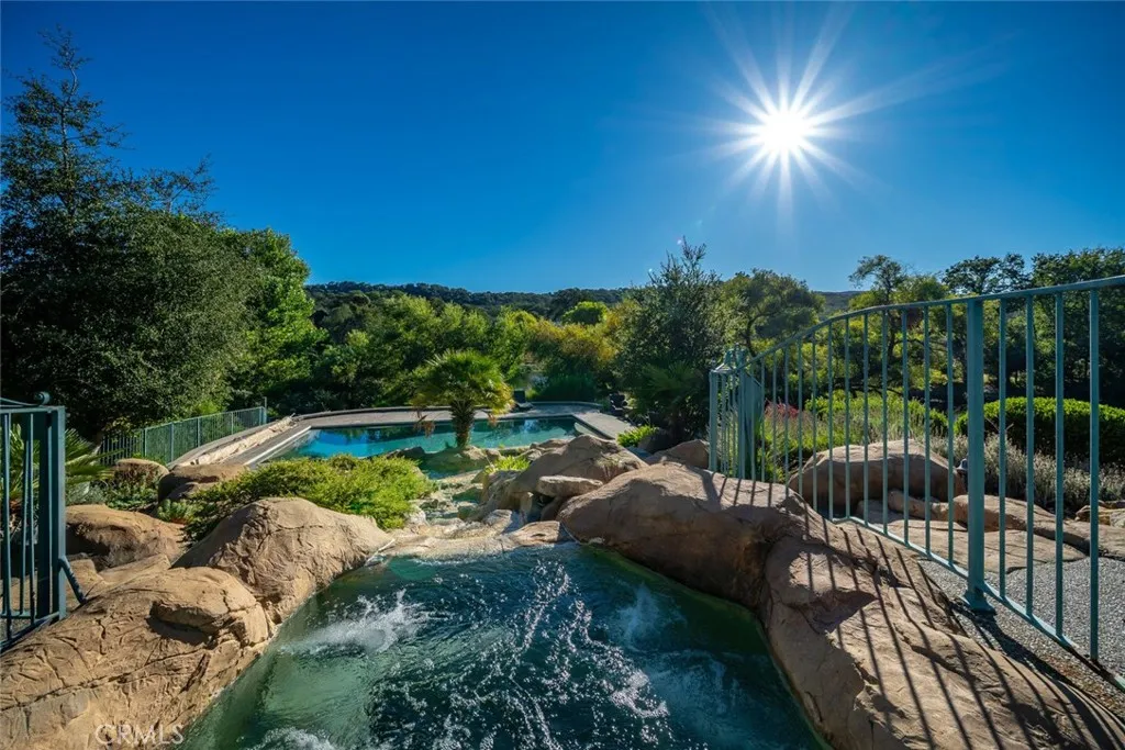 Set within the coveted Chandler Ranch neighborhood in West Atasacadero, this 3.93-acre estate captures the essence of living on the Central Coast. Offering 5 bedrooms and 3.5 baths, the residence was originally crafted in 1983 and has since been tastefully renewed with modern upgrades. The heart of the home is its beautifully remodeled kitchen, featuring marble counters and accent backsplash, custom cabinetry, and seamless flow to an expansive outdoor patio paved in stone, where a fire pit, pergola, and integrated speakers create the perfect atmosphere for gatherings. The interiors balance sophistication with comfort. A newly finished laundry room combines large slate flooring with abundant storage, while the subterranean wine cellar, lined with cork and built for 280 bottles, adds character and function. Flexible living spaces include a cozy game room with fireplace, a private office with built-in cabinets, and a dedicated fitness room. Upstairs, every bedroom opens to a private balcony or deck, and the primary suite stands apart with dual walk-in closets, spa-inspired bath, heated tile floors, a steam shower, and a deck designed for moonlit views overlooking the private lake. Outdoor living is elevated by a cascading water feature: the spa gently spills into a shallow kiddie pool before reaching the main pool all surrounded by a secure perimeter fence. Beyond the pool, youll enjoy your own private lake stocked with bass and catfish which has been the centerpiece of the property for decades, bordered by mature oaks, fruit and nut trees, and wildlife . With dual solar syste