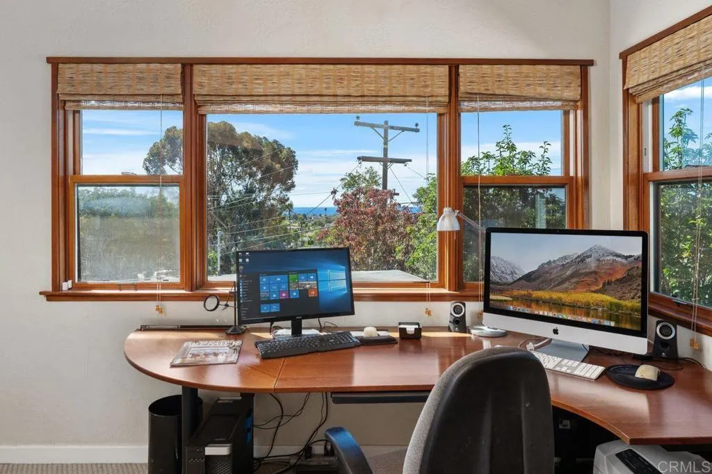 Remarkable Olde Carlsbad Ocean View Home Perched in the historic and highly sought-after community of Olde Carlsbad, this mid-century Craftsman-inspired home is as special as it is rare. Ocean views greet you from multiple vantage points, creating the perfect backdrop for an entertainers dream, both inside and out. Inside, thoughtful updates blend seamlessly with timeless character: Milgard doors and windows, wide-beamed ceilings, and a double-sided fireplace anchor the main living spaces. Custom cherry wood flooring and cabinetry, plush Berber carpet, and strategic designer lighting enhance the homes warmth and sophistication. The chefs kitchen, complete with a generous island and direct access to the yard and built-in BBQ, is ideal for small and large gatherings. The primary suite offers true retreat living, with sit-down ocean views, a private balcony, large walk-in closet, separate water closet, and a luxurious soaking tub. Additional highlights include a downstairs denperfect for movie nights or a potential fourth bedroomand a versatile loft space at the top of the stairs. Two bedrooms and 2 1/4 bath downstairs, primary upstairs, and en suite bathroom for each bedroom! Step outside to a backyard oasis featuring a large covered sitting and entertaining area with views to the Pacific, a tranquil water feature, custom fencing, along with ample yard and lawn for kids and pets. Whether hosting friends or enjoying quiet evenings, this outdoor haven is made for relaxation and fun. Walk to area schools, shops, restaurants, easy access to nearby fwys and public transportation.