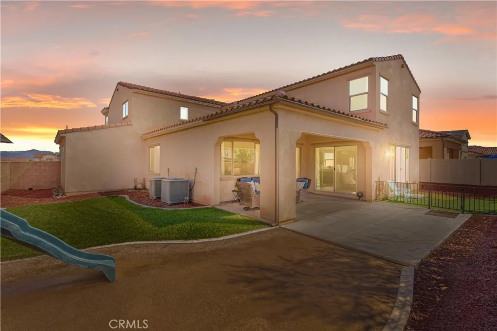 This stunning multigenerational home offers 5 bedrooms, 3.5 bathrooms, and a spacious bonus room, including an attached Multi-Gen suite with its own private entrance. The Multi-Gen suite is thoughtfully designed with a living room, spacious bedroom, kitchenette, large walk-in closet, and stackable washer and dryerideal for extended family, guests, or rental potential. The heart of the main home is an upgraded kitchen featuring stainless steel appliances, double ovens, a large granite island, walk-in pantry, and multiple built-ins, all seamlessly connected to the open floorplan and spacious family room. Expansive patio doors lead to a California room overlooking the large backyard, complete with a kids play structure and plenty of room to entertain. Energy efficiency is built in with paid solar, while a tandem 3-car garage provides ample parking and storage. Residents also enjoy access to outstanding community amenities including multiple pools, spas, picnic areas, and sports parks. Conveniently located near shopping, freeways, and top-rated schools, this home blends comfort, functionality, and resort-style living.