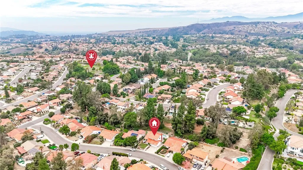Welcome to 19873 Calle Granada, Walnut a spacious 4-bedroom, 3-bathroom home offering approximately 2,015 sq ft of comfortable living space, ideally set on a 9,200+ sq ft lot in a highly desirable neighborhood. This thoughtfully designed two-story residence sits at the end of a quiet cul-de-sac, providing privacy and a peaceful setting. The bright living room boasts high ceilings, large windows with elegant shutters, and an inviting dining area. The functional kitchen, appointed with cherry wood cabinets, overlooks the expansive backyard, while the cozy family room is perfect for gatherings with seamless access to the outdoor space. Upstairs, the roomy primary suite features soaring ceilings, two ample closets, a private full bathroom, and beautiful views, creating the perfect retreat. Additional highlights include double pane windows throughout, updated central heating and air, an attached 2-car garage, a long driveway with RV parking on the side, and a newer roof. The generously sized backyard showcases mature landscaping and a sparkling pool that has been recently re-serviced, offering the perfect setting for entertaining or relaxing. With its spacious lot, the property also provides J/ADU potential, ideal for multi-generational living or additional rental income. Plus, its south-facing orientation helps keep the interior naturally cool and comfortable throughout the year. Conveniently located near top-rated Walnut schools, parks, shopping, and freeway access, this home blends everyday functionality with long-term potential. Dont miss the opportunity to own this beautif