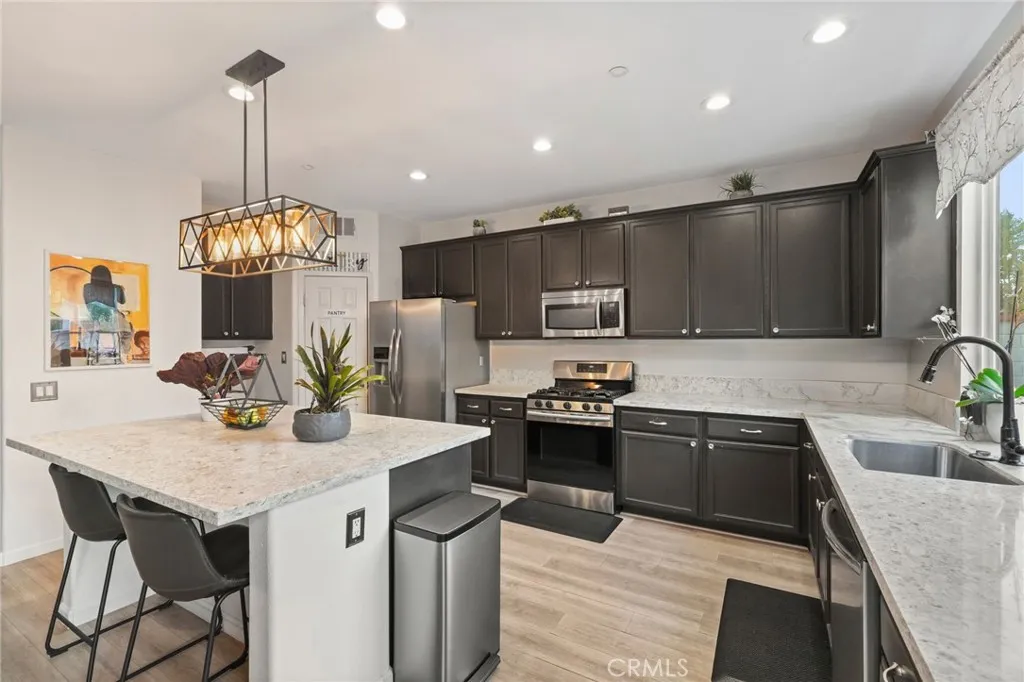 Welcome to this newly renovated two-story residence in the prestigious Hunters Ridge community, where timeless design meets modern luxury. Featuring 4 spacious bedrooms and 3 bathrooms across 2,305 sq ft, this home blends high-end upgrades with enduring craftsmanship. Step inside to soaring ceilings, abundant natural light, and extensive recessed lighting throughout. The entire home has been beautifully updated with fresh finishes and a seamless open-concept layout, designed for both everyday living and entertaining. The living room is centered around a cozy fireplace, while the newly renovated kitchen showcases sleek quartz countertops, large island, generous cabinetry, and modern finishes, with an adjacent dining area perfect for gatherings. The backyard oasis is the crown jewel of this property. A brand-new PebbleTec saltwater pool with 22 customizable LED light settings sets the stage for luxury living. Designed for both relaxation and entertainment, its paired with a spa, cascading waterfalls, dual fire pits, lush landscaping, low-maintenance turf, and multiple seating areascreating a true private resort experience. Upstairs, the expansive primary suite offers a private retreat with a spa-inspired en-suite bath and ample closet space. Three additional bedrooms provide versatility for family, guests, or a home office- all enhanced by brand-new carpet with plush memory foam padding for added comfort. Additional highlights include central heating and cooling and a two-car attached garage. Situated on a 5,096 sq ft cul-de-sac lot in the highly sought-after Etiwanda School