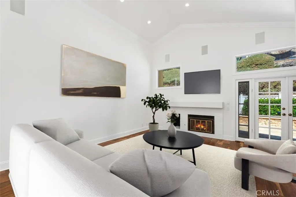 Stunningly remodeled single-level home in the highly desirable Pinecrest community of North Mission Viejo! This beautifully updated 3-bedroom, 2-bathroom residence is truly move-in ready. Inside, youll be greeted by acacia wood flooring that flows seamlessly through the main living areas and bedrooms. Vaulted ceilings with recessed lighting create a light, bright, and spacious atmosphere in the living room. The chefs kitchen features stainless steel appliances, custom cabinetry, granite countertops, and a raised ceiling that enhances the open-concept design. Down the hall, two generously sized guest bedrooms share a full bath with an upgraded vanity. The primary suite includes high ceilings, a walk-in closet, built-in desk space, and a stylishly updated en-suite bathroom with white tile finishes and sleek black fixtures. Step outside through French doors to a private backyard oasis complete with fruit trees, a vegetable garden, custom gas fire pit, string lighting, and built-in wall speakersperfect for relaxing evenings or entertaining guests. Additional highlights include a two-car garage with extra storage cabinetry, laundry closet, and Home have been re-piped with PEX. As a member of the Lake Mission Viejo Association, youll enjoy access to boating, fishing, concerts, community events, and more. Dont miss this opportunity to own a beautifully updated single-story home in one of Mission Viejos most sought-after neighborhoods!