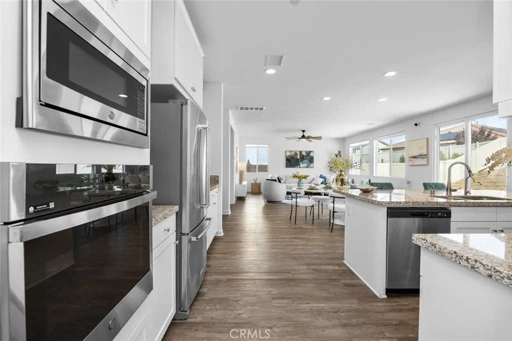 Welcome to 14016 Cavallano Court! A stunning 2022-built residence nestled in Beaumonts highly coveted Olivewood gated communitywhere contemporary design meets timeless sophistication. From the moment you step inside, youre greeted with an open-concept living space that effortlessly blends style and functionality. The chefs kitchen is the heart of the home, featuring a grand center island, polished white cabinetry, and a spacious walk-in pantryperfect for both everyday living and entertaining in style. The main level offers a private guest suite with a full bath, ideal for visitors or multi-generational living. Upstairs, retreat to your luxurious primary suite with a spa-inspired bathroom and expansive walk-in closet. A versatile loft awaits as well, ready to serve as an additional family room, media space, or relaxation zone. Outside, the large backyard is a blank canvasready for your dream courtyard, sparkling pool, or expansive deck to host unforgettable summer gatherings. As a resident of Olivewood, youll enjoy resort-style amenities, including a sparkling pool, clubhouse, fitness center, BBQ area, playground, and scenic walking trails. Plus, youre conveniently located near top-rated schools, the Cabazon Outlets, championship golf courses, and with quick freeway access (I-10 & CA-60), youre just minutes from Redlands, Riverside, and vibrant dining and nightlife. With paid-off solar, modern finishes, and a move-in ready design, this home offers not just a lifestyle, but a legacy. Dont miss the rare opportunity to own this turnkey gem in one of Beaumonts most sought-after