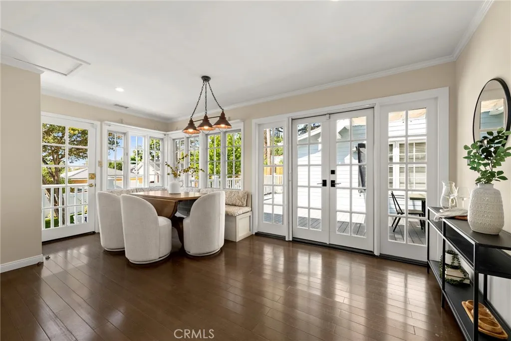 Welcome to 5827 Washington Ave., a rare single-level vintage beauty set on an oversized lot in one of Uptown Whittiers most coveted neighborhoods. With stunning curb appeal and timeless architecture, this home exudes warmth and character while offering modern upgrades for todays lifestyle. Step inside to discover hardwood floors that flow seamlessly throughout the entire home, connecting the spacious living room, family room, and formal dining area in a warm, elegant layout. The oversized kitchen includes a sunny breakfast nook and a convenient laundry room, while three generously sized bedroomsincluding a serene master suiteoffer comfort and style. Built with both security and quality in mind, the home has been retrofitted with top-of-the-line materials and craftsmanship. Modern conveniences include a brand-new whole-home water filtration system and water softener. The unique U-shaped design allows nearly every room to open through French doors to a tranquil courtyard, perfect for indoor-outdoor living. The resort-style backyard features low-maintenance turf, a sparkling pool, and multiple entertaining spaces, while the deck offers breathtaking sunset views over the Whittier Hills. The front yard provides a generous grassy area, ideal for play, gardening, or simply enjoying the outdoors. Additional highlights include an oversized garage with abundant storage and workspace potential, perfect for car enthusiasts, hobbyists, or anyone needing extra space. Just steps from Hellman Trail and minutes from Turnbull Canyon, outdoor recreation is at your doorstep. Walk to Uptown Whi