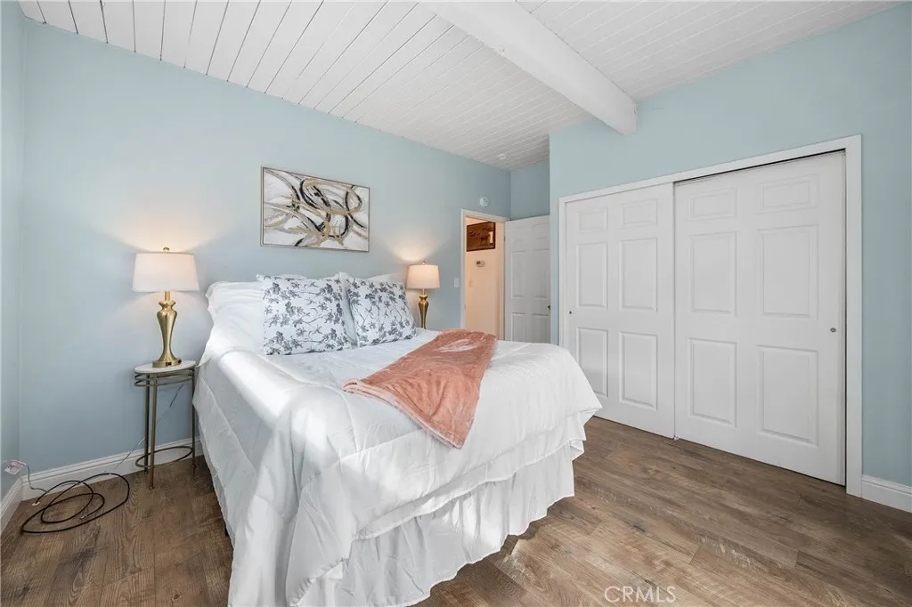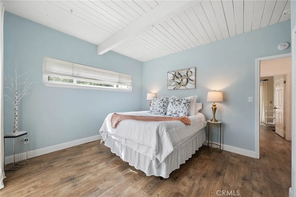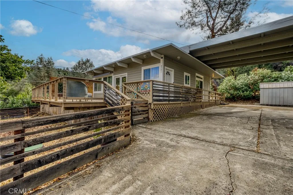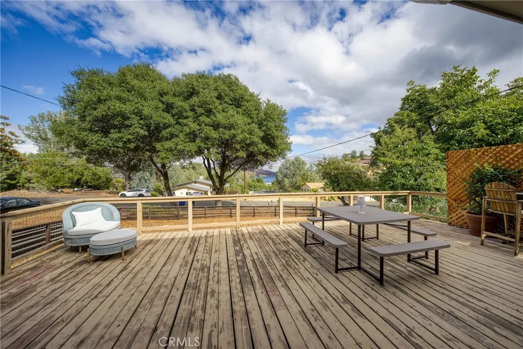 This charming modernized single-level mid-century style lake view home that has been recently upgraded to reflect modern styling. The home features new windows and French doors, laminate flooring throughout, and a light-filled great room with exposed beams and doors that open to a large front deck overlooking the lake. The modern kitchen is equipped with bar counter seating and tile countertops. The stainless steel appliances include a propane range, microwave hood, and refrigerator. The integrated dining room is elevated by a modern chandelier and is located off the French doors that lead to the wrap-around style deck, perfect for entertaining and barbecues. The residence includes two bedrooms that offer slider doors to the wrap around style deck, the rooms are full of naturallight. Thebathroom was updated with a walk in tiled shower, wainscotingand a single furniture style vanity. Outside, you will find an attached carport with built-in storage, a laundry room and a long, flat driveway that accommodates many cars. The front yard is fenced and is graced by oak trees and nature sightings. Located in Kelseyville Riviera, the home is close to schools, shopping, and the lake. Enjoy country living in a centrally located community in Lake County, California, just 2.5 hours from San Francisco and 2 hours from Sacramento.