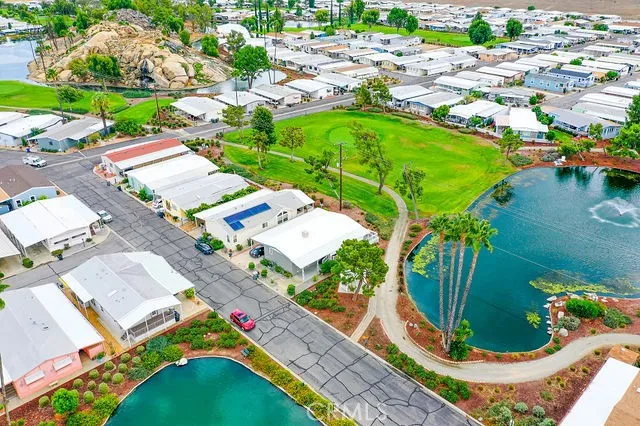 Beautiful home located in a highly desirable 55+ Manufactured Home Community. Situated on a great lot right next to the lake and golf course. This bright and open home features numerous windows that bring in plenty of natural light. The kitchen offers white cabinetry and stainless-steel appliances, with a convenient indoor laundry area nearby as well as 3 carport spaces for parking. Enjoy relaxing on the covered patio while taking in the scenic views. The community offers exceptional amenities including a clubhouse, swimming pool, and golf facilitiesfree for residents to enjoy. There are also many social events and activities throughout the year, making this an ideal place for an active senior lifestyle.