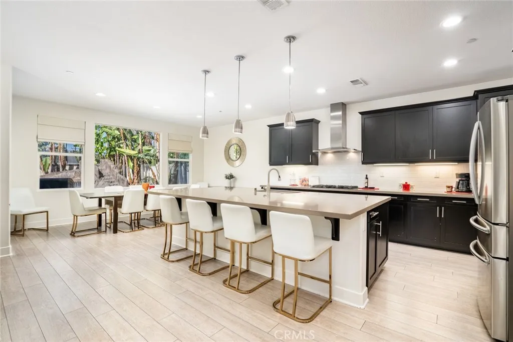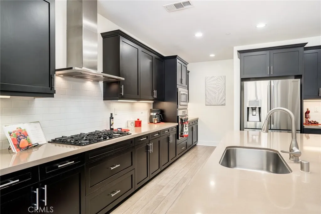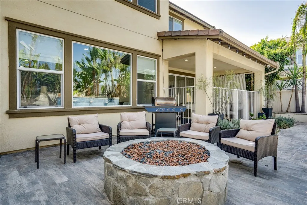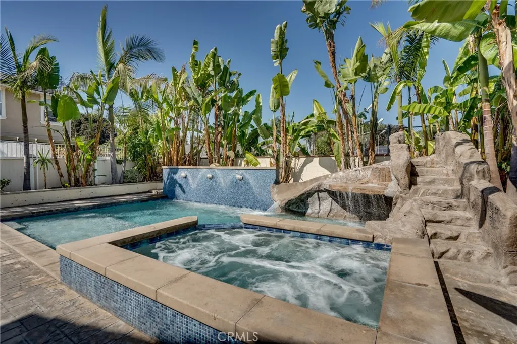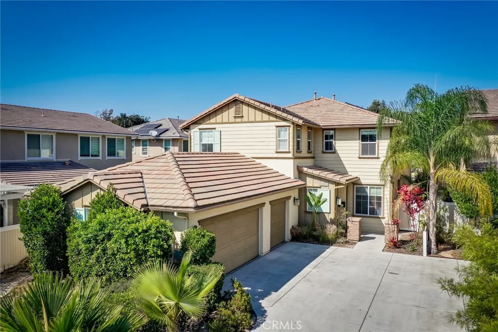 To the Victor, go the spoils......You work hard, why not share that success with family and friends and enjoy this spectacular and immaculate DREAM HOME! With well over 3000 square feet of contemporary comfort with 10' ceilings, 5 expansive bedrooms (2 down & 3 up, two of which are master/primary ensuites). The upstairs primary bedroom is palatial and features a soaking tub, dual & separate vanity areas, an enormous standing shower stall and the largest walk in closet you'll ever see. With 4 contemporary baths, 2 great rooms (1 down and 1 up), a large inside laundry room with folding table, sink and tons of storage you will have room for everyone and everything. Its open floorplan also boasts an impressive chef's gourmet kitchen with massive center island and features elegant dark stained cabinetry, high end stainless appliances, coffee and wine bar areas, beautiful European quartz slab counter tops and a huge walk in pantry and butler's prep area for large gatherings. Speaking of large gathering you will be the home everyone will want to visit (including all of your out of state friends) with your resort style backyard. Over $150k alone was spent on the 1 of a kind pebble tech pool & spa with Baja shelf for sunbathing, a peaceful cascading waterfall over natural looking rock features with a fun built in rock slide for the young and the young at heart. Even with Disneyland less than 10 minutes away with the pretty, colorful landscape lighting and oversized gas firepit you probably will want to skip the fireworks and just "staycation" in your own secluded private backyard. O