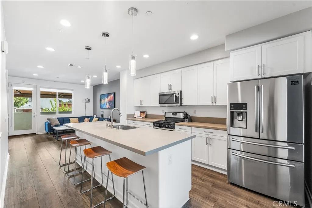 Tired of watching your hard-earned money disappear on rent? Imagine owning a fully furnished and decorated, stunning, move-in-ready home that not only offers the largest floor plan in the sought-after BLVD Walk community, but also qualifies for a $20,000 grantno repayment requiredfor your down payment and closing costs! Centrally located just minutes from DTLA, OC, and the SGV, youll love making this highly upgraded, model-perfect townhouse your new home! With three bedrooms, each with a full ensuite bathroom, and a generous great room, this beautifully upgraded home blends comfort and convenience, offering a rare opportunity for singles and families alike. Spanning the entire length of the home, the great room provides an open space to gather, visit, and share meals. The modern kitchen is equipped with soft-close cabinetry, luxurious quartz countertops, sleek stainless steel appliances, and a breakfast bar. A handcrafted woodwork wall adorns the dining room. The conveniently located powder room provides excellent guest comfort and accessibility. Savor the privacy of having a full ensuite bathroom attached to each of the three bedrooms. Custom closets throughout and a built-in cabinet at the front door guarantee storage is never in short supply. The ground floor bedroom offers a quiet space away from the other bedrooms on the upper level. Fresh paint and made-to-order window shades finish this gorgeous home. Outside, retreat to the private balcony to sip your morning coffee or relax with a glass of wine. Rain or shine, the retractable awning has you covered. The ground floo