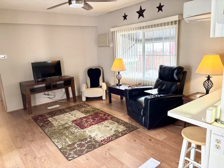 Welcome to TRAMVIEW Mobile Home Park! This turnkey furnished 2-bedroom, 1-bath home offers comfort, space, and convenience in a desirable Palm Springs location. Step inside to a spacious floor plan featuring raised ceilings in the living area, creating an open and airy feel. The eat-in kitchen offers abundant storage and comes equipped with an oven/range, refrigerator, dishwasher, and microwave. The living room opens directly onto a large covered patio, perfect for relaxing or entertaining. The second bedroom, currently used as an office/storage area, includes a stackable laundry unit for added convenience. The bathroom features a tub/shower combo and plenty of space. The primary bedroom boasts a wall of closets and large windows that fill the room with natural light. Recent updates include a newer foam roof (approximately 4 years old), newer HVAC system, and a newer swamp cooler. Residents of Tramview Mobile Home Park enjoy access to a large swimming pool and spa, a clubhouse with entertainment areas, two kitchens, a piano, pool table, and card tables for owner use. Ideally located near Target, Trader Joes, and just a short drive from Palm Springs International Airport and downtown Palm Springs.