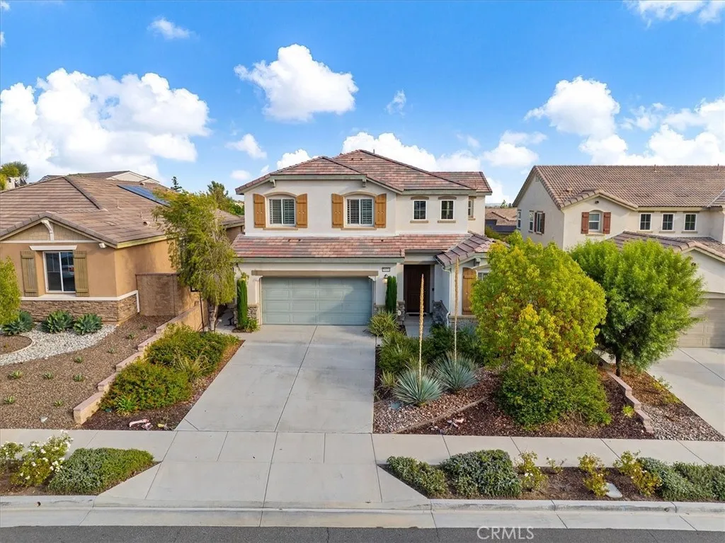 Beautiful Pool & Spa Home in the Heart of Wildomar! Welcome to this stunning two-story, four-bedroom, three-bath home offering 2,389 sq. ft. of comfortable living space. Built in 2015 and ideally located near Inland Valley Hospital, this home combines modern style with everyday functionality. One bedroom and full bathroom are conveniently located downstairsperfect for guests or multigenerational living. The spacious kitchen is the heart of the home, featuring an extended center island with bar seating, sleek quartz countertops, stainless steel appliances, a double oven, six-burner cooktop, built-in microwave, and an industrial-style stainless steel sink. The open-concept layout flows seamlessly into the family room, where youll find built-in shelving, a cozy gas fireplace, and beautiful plantation shutters. Upstairs, the primary suite is a good Size and the Primary Bathroom offers a relaxing retreat with dual sinks, a vanity area, a soaking tub, separate walk-in shower, large walk-in closet, and private water closet. Two additional bedrooms are upstairs with a Full Bathroom with a Tub-in-shower. Also Upstairs is a Private Laundry Room, close to most of the bedrooms and has a large storage closet for linens, towels and supplies. An open loft provides the perfect space for a play area, home office, or media room. Step outside to your private backyard oasis featuring a sparkling pool and spa, Alumawood patio cover with a fan, and plenty of room for entertaining or relaxing year-round. The 2-Car Garage is being used as a gym currently. There is an EV Charger for electric vehicl