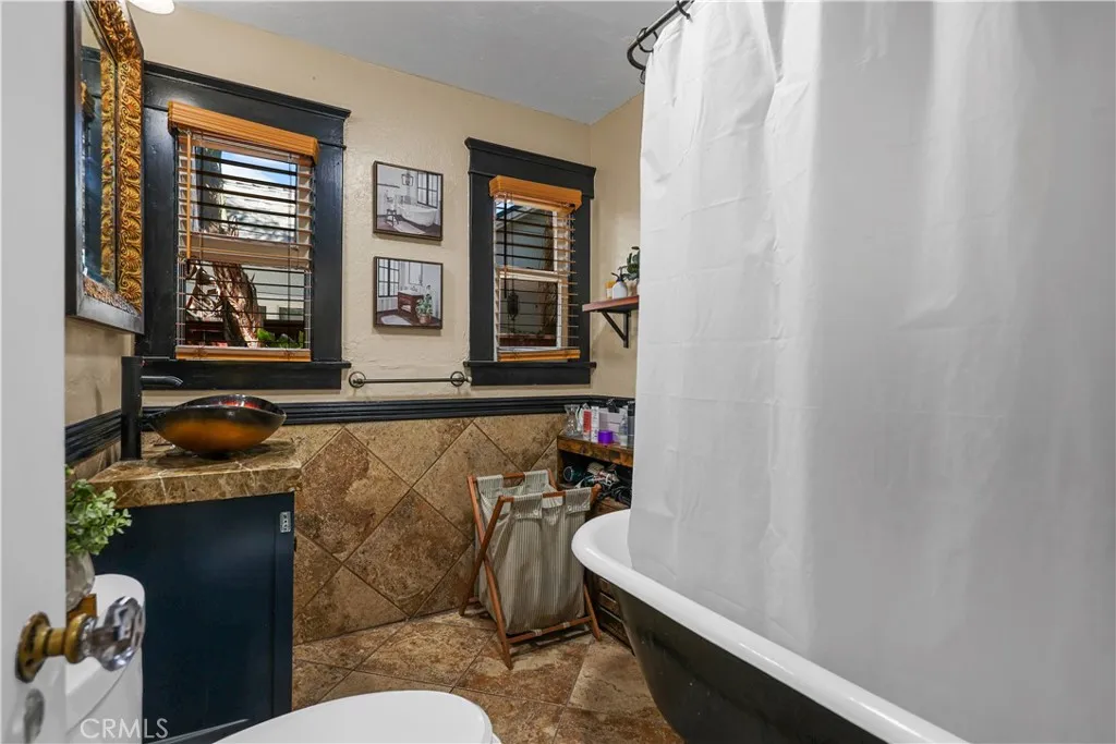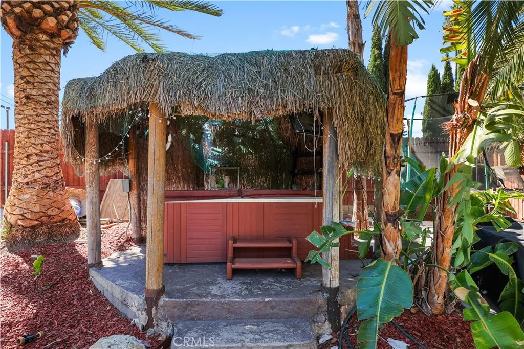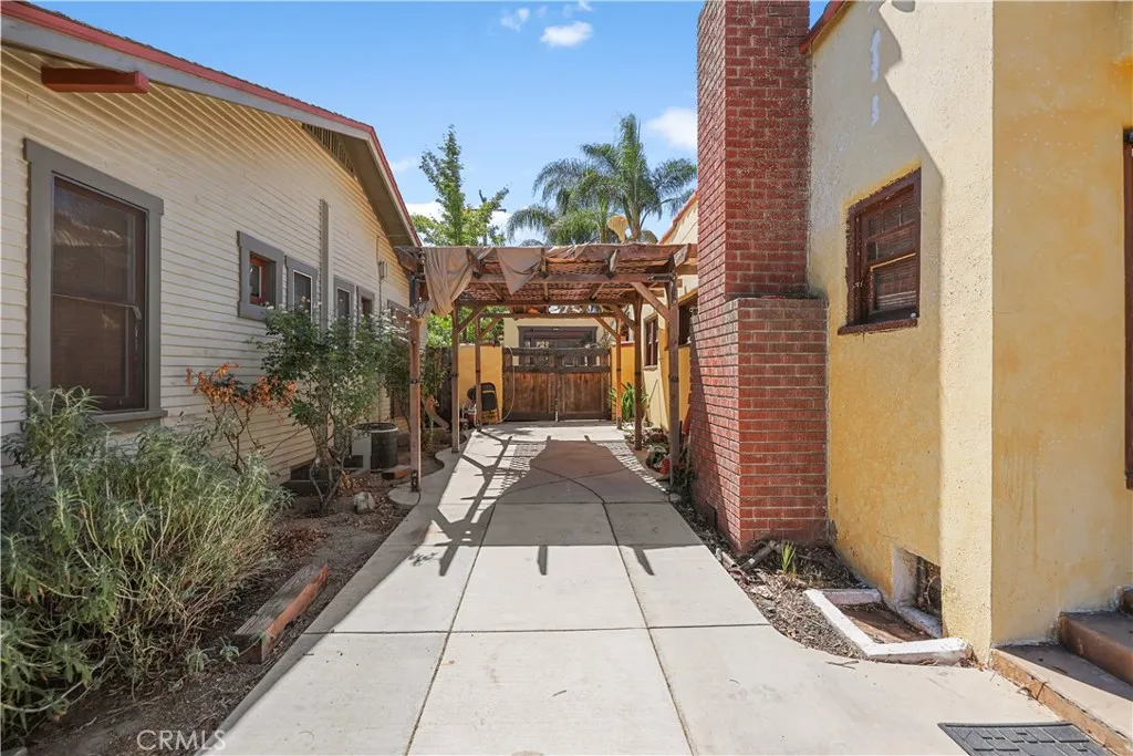 This home located in the Corona Historic District will check all the boxes on your checklist. Home could potentially be eligible for Mills Act. This 1,200 square foot, single-story home is situated on a generous 7,400 square foot lot. The flourishing community offers a unique lifestyle experience with direct access to Husted Park right from your backyard. The main house includes 2 full bedrooms and 1 bathroom, with an additional living space, located in the backyard. This private space has a separate bedroom and full bathroom, perfect for guests or extended family. The interior boasts a charming Spanish style, a modified open-concept layout, and elegant wood-framed arches throughout. The kitchen has been beautifully updated with modern upgrades, granite countertops, newer cabinets, and appliances. Additional home features include upgraded copper plumbing, a new sewer line, tankless water heaters, and air conditioning. You will be captivated by the outdoor living space, truly an entertainer's paradise. It features resort-style palms, meticulously maintained landscaping, a newly cemented area, and a deck with a private jacuzzi. Imagine gathering friends and family for drinks at the tiki bar or relaxing around the firepit. The location is ideal, offering private access to Husted Park directly from your gate. The highly coveted Corona Historic District lifestyle makes this the perfect place to call home.