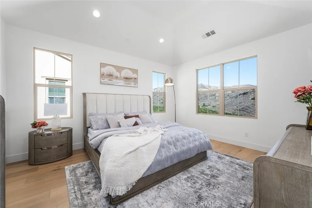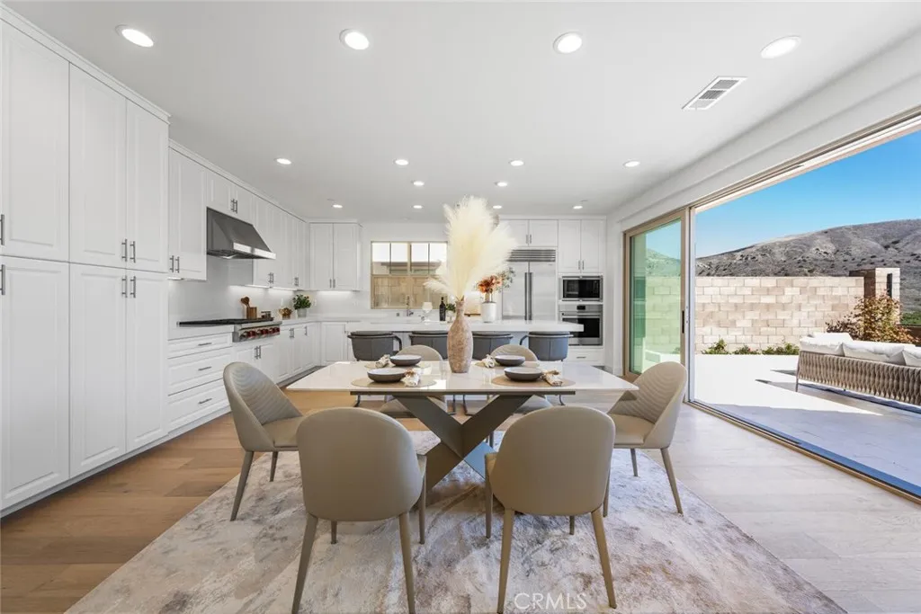 Experience the best of Irvine living in this never-lived-in residence located in The Reserve at Orchard Hills, a 24-hour guard-gated community surrounded by avocado orchards and hillside trails. Part of the award-winning Irvine Unified School District, this home combines architectural elegance, natural light, and thoughtful design within one of Orange Countys most sought-after neighborhoods. Capturing unobstructed mountain views, the residence embraces seamless indoor-outdoor living through an expansive three-panel sliding glass wall that opens to a custom backyard with tiled patio, turf, gardens, and irrigation system. Inside, every detail is intentionalwhite-oak engineered hardwood floors, recessed lighting, and 9-foot ceilings create a bright and refined atmosphere. The chefs kitchen is equipped with a Wolf 6-burner cooktop, Sub-Zero refrigerator, built-in oven and microwave, deep pantry, quartz countertops, and soft-close cabinetry with pot-and-pan drawers. The open-concept layout connects the kitchen, great room, and outdoor living areaideal for gatherings and relaxation alike. The main-floor bedroom includes a nearby full bath with walk-in shower, offering flexibility for guests or multi-generational living. Upstairs, a spacious loft provides a secondary retreat for TV, study, or play. The primary suite features vaulted ceilings, a walk-in closet, freestanding soaking tub, dual vanities, and a designer tile walk-in shower with invisible drain. The upstairs laundry room includes a sink and additional cabinetry for convenience. Additional highlights include fully paid s