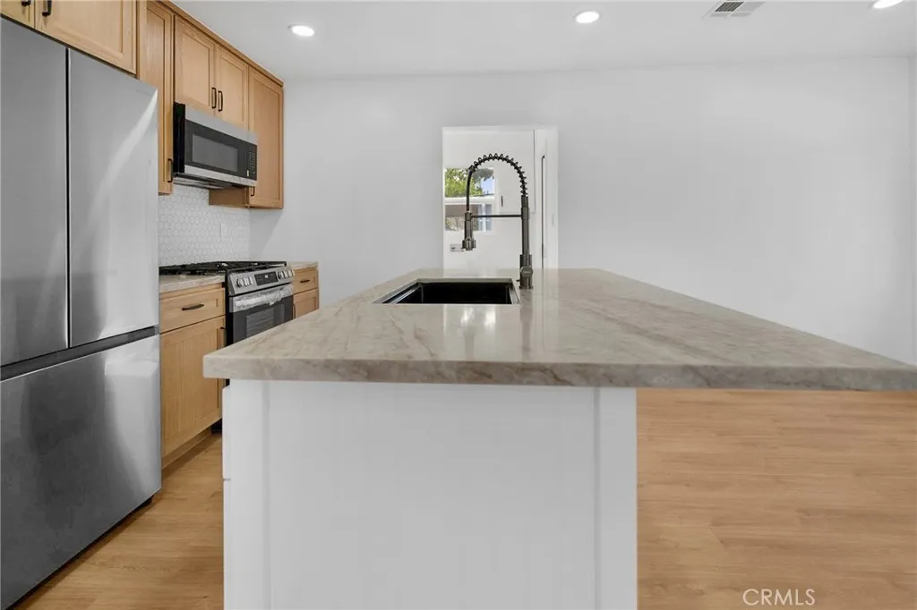 SIGNIFICANT PRICE REDUCTION OF $27,000. ATTENTION TO DETAIL! Every aspect of this property has been improved. All surfaces have been upgraded, and all the systems are new. A remodeled kitchen with brand-new SS appliances, quartz countertops, a massive island with seating for four, and new plumbing and electrical fixtures serves as the hub of this home. An open-concept dining room stands adjacent to the living room offering a wood-burning fireplace and recessed lighting. Scratch resistant laminate runs throughout the house and to three bedrooms that each have ceiling fans with remotes. The primary bathroom has a brand-new tub and tub surround, along with a new vanity highlighted with wainscotting. The secondary bathroom offers a new shower, new fixtures, and a sliding-mirrored-pocket door. The separate laundry room provides hook-ups for the washer/ dryer and leads to the fully landscaped backyard. IN THE BACKYARD YOU WILL FIND A NEW, BEAUTIFUL ADU which can be used for extended family or additional rental income. This 1/1 guest house is complete with the same finishes as the main house and has laundry hookups on the covered porch. Again, all the systems on this listing are UPGRADED. 11225 Acala offers the following: new vinyl-double-paned windows, new HVAC, new mini split in ADU, new electrical panel and wiring throughout the house, new supply and drain lines, new recessed lighting, efficient on-demand water heaters, new stucco, and new interior and exterior paint. 11225 Acala is located in culturally rich community of San Fernando and offers easy access to freeways, parks,