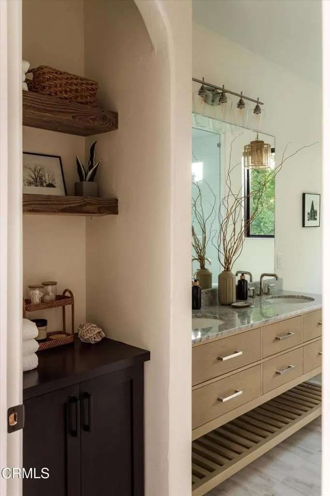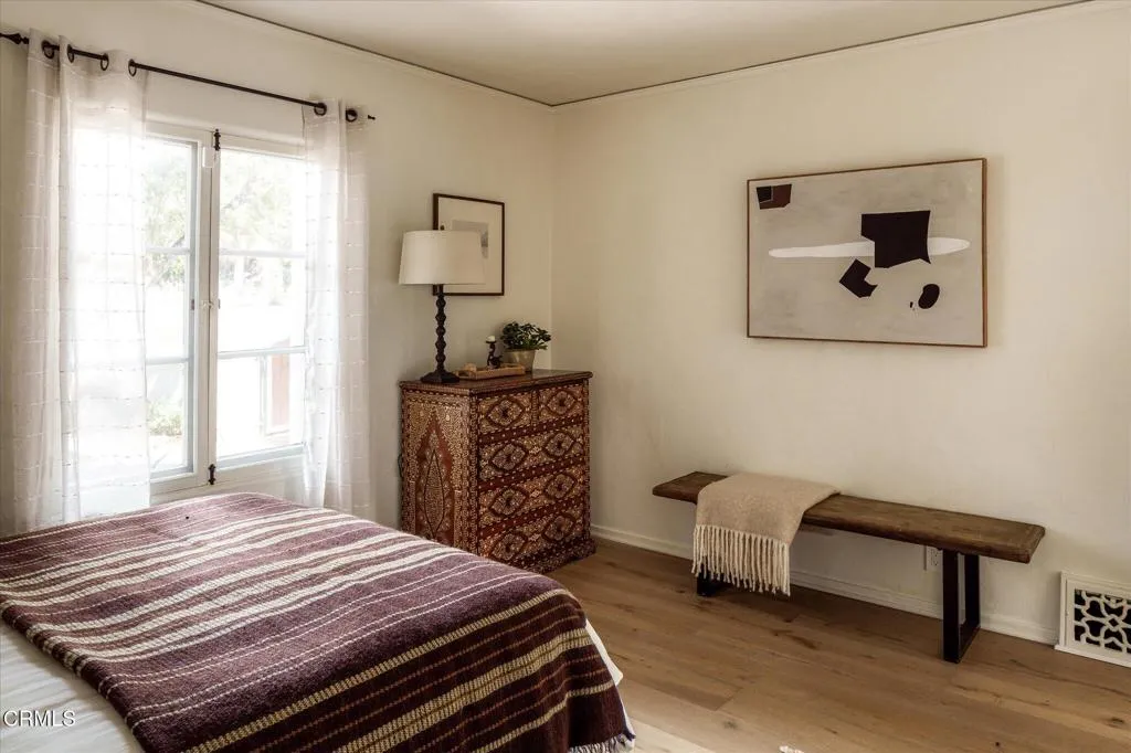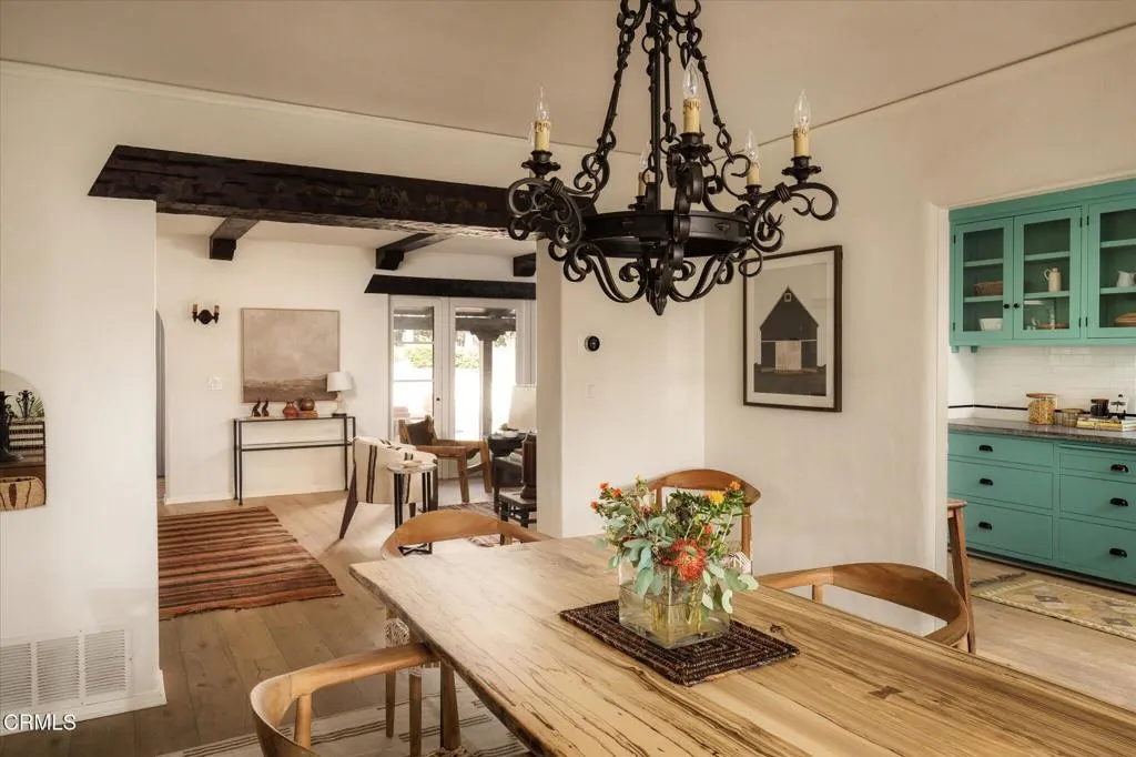 A stunning example of Spanish Revival architecture, this 1924 residence exudes timeless elegance and authentic character at every turn. Thoughtfully preserved and enhanced, the home's charm begins at first glance--its classic clay tile roof, arched wood post front porch, and walled courtyard entrance framed by lush professional landscaping convey both its historic pedigree and enduring beauty.Inside, the home retains its 1920s craftsmanship with beamed ceilings in the living and dining rooms, and a magnificent fireplace adorned with original Spanish tiles as the centerpiece. A gracious wide doorway with an exposed wood header connects the living room to the dining area, offering a sense of openness while maintaining architectural distinction between the spaces.The remodeled kitchen blends modern convenience with traditional style--featuring stone countertops, a farmhouse sink, stainless steel appliances, an extra prep sink, and thoughtful design details that elevate everyday living.The primary suite is a true retreat, with vaulted ceilings that enhance the volume and light of the room. The primary bath has been beautifully updated with a stand-alone soaking tub, marble-topped vanity, and a picture window framing serene views. Throughout the home, casement windows and French doors open to the outdoors, leading to a terracotta-tiled patio accented by handcrafted Spanish tile details--perfect for al fresco dining or quiet mornings.Completing the property is a beautifully finished ADU, offering a living area, full kitchen, and bedroom, all designed with the same care and attent