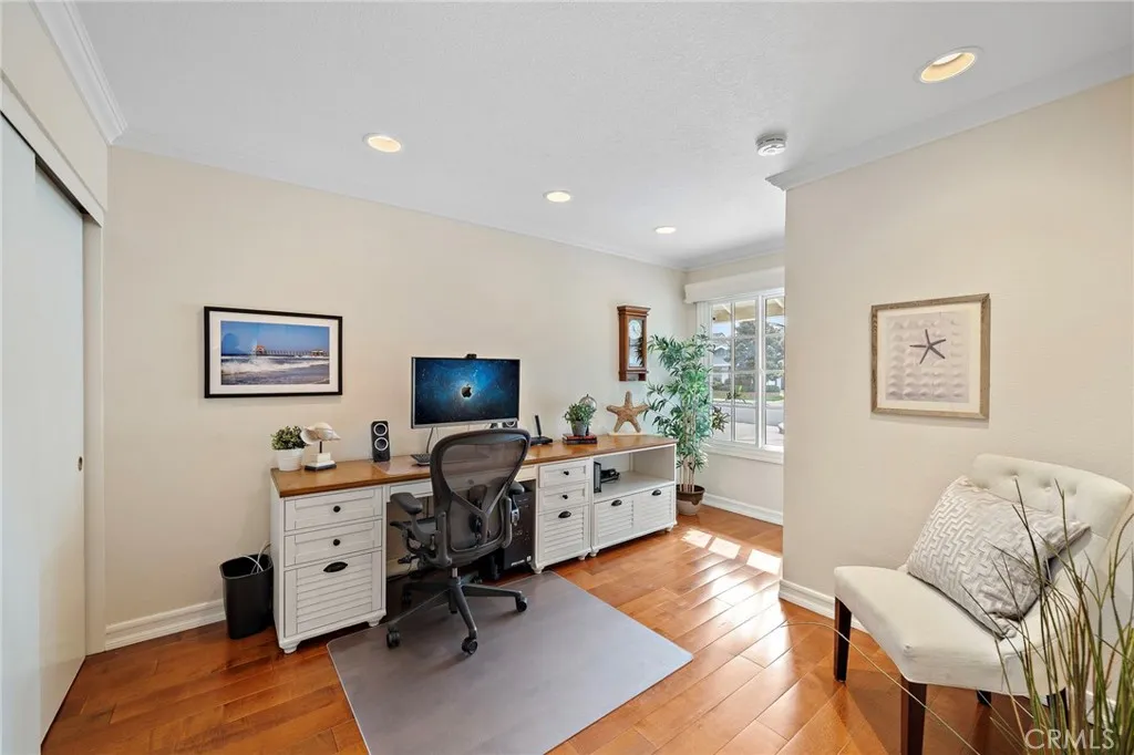 Located Just Moments From The Neighborhood Park And Bike Trail, This Stunning Residence Offers 5 Bedrooms, 3 Bathrooms, And Over 2,800 Sq. Ft. Of Thoughtfully Designed Living Space Including A Primary Suite Conveniently Located On The Main Level. The Downstairs Showcases Custom Hardwood Flooring Throughout, A Formal Living Room And A Spacious Family Room, Each With Its Own Cozy Fireplace. The Gourmet Kitchen Has Been Professionally Expanded And Remodeled With Granite Countertops, White Shaker Cabinetry, Stainless Steel Appliances, Recessed Lighting, And A Custom Island With Bar Seating. A Large Bay Window Overlooks The Garden, Flooding The Space With Natural Light. Also On The Main Floor Are Two Highly Desirable Guest Bedrooms And A Full Bath. Upstairs, Youll Find Two Oversized Bedrooms, A Full Guest Bath, And A Large Walk-In Storage Closet. Additional Highlights Include Dual-Pane Windows Throughout, Central Air Conditioning And Heating, Copper Plumbing, And Direct Access To A Fully Finished Garage Complete With Abundant Storage, A Workbench, Pull-Down Attic Access, And Epoxy Flooring. Conveniently Located Near Shopping, Parks, And Award-Winning Schools, This Home Truly Reflects Pride Of Ownership.