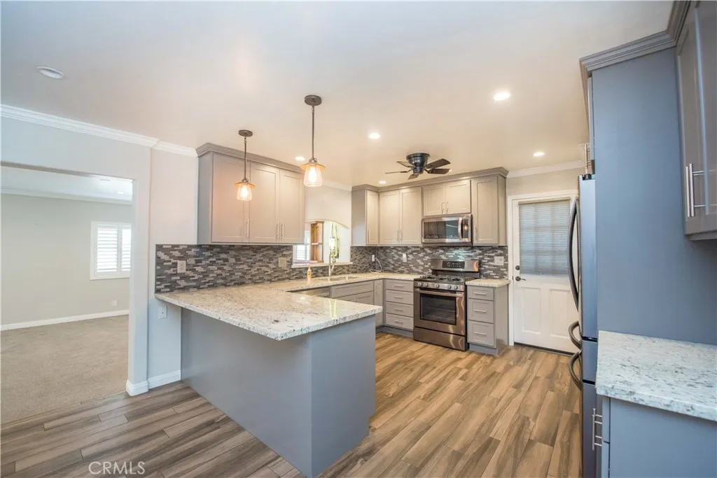 Beautiful single-story Anaheim home with RV and boat/toy parking on a corner lot! This completely remodeled residence showcases designer finishes and modern upgrades throughout. Enjoy a recently remodeled kitchen featuring quartz countertops, custom cabinetry, and stainless steel appliances. The home has been freshly painted inside and out and includes new front doors, luxury laminate vinyl tile flooring, and modern lighting. Entertain in the spacious bonus room with built-in bar, perfect for gatherings. Additional highlights include remodeled bathrooms, huge attic storage, and a functional open layout that blends comfort and style. Conveniently located near shopping, dining, parks, and major freeways. A true turnkey single-story home in a desirable Anaheim neighborhood!