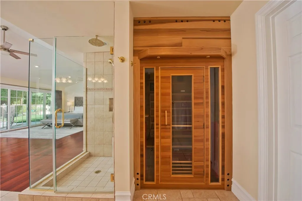 Welcome to this exquisite, gated Tuscan villa, gracefully poised in the picturesque hills of Encino. A showcase of timeless architecture and refined craftsmanship, this residence is defined by its grand open-concept living spaces, soaring vaulted ceilings, gleaming wood floors, and elegant stone finishes throughout. At the heart of the home lies a spectacular family-style chefs kitchen, complete with an expansive center island, generous breakfast bar, casual dining area, and custom cabinetry. The kitchen is fully equipped with professional-grade Viking and Sub-Zero appliances, including dual ovens, built-in refrigeration, microwave, cooktop with griddle, and even an indoor BBQ all seamlessly connecting to the fabulous family room, creating a culinary dream designed for both everyday living and grand entertaining. Additionally spread out at the central entertainer's bar with wine fridge, relax in the spacious formal living room with stunning stone fireplace or enjoy intimate dinners or extended family celebrations in the spacious formal dining room. Retreat to the opulent first-floor primary suite, a true sanctuary offering a romantic fireplace, private sitting area, direct access to the rear grounds, and a lavish spa-inspired bath. Enjoy a jetted soaking tub, dual-head shower, oversized vanity, sauna, and a custom walk-in closet fit for the most discerning tastes. Four additional bedrooms provide ample flexibility two of which can serve as secondary primary suites, a theater, or fabulous game room! Step outside and decompress in the ultra-private rear oasis, where tranqui