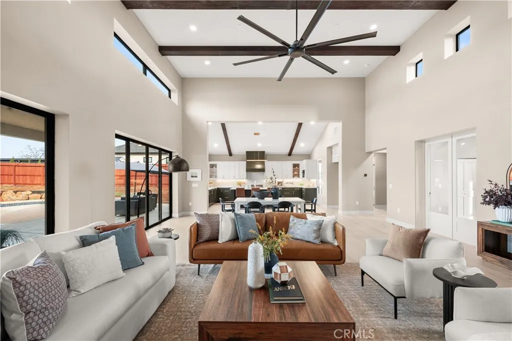Forever Home. Built with Intention. Designed for Life. Designed as a true forever home, this 3,358 square foot custom residence combines structural integrity, energy efficiency, and refined comfort in one thoughtfully executed design. Constructed with Insulated Concrete Form (ICF) technology, the exterior walls consist of 6-inch steel-reinforced concrete flanked by over 5 inches of continuous insulation, delivering exceptional durability, fire resistance, and thermal performance. This PG&E Zero Net Energy qualified home is powered by owned solar, contributing to reduced utility costs. Insurance options available through Farmers Insurance reflect the strength of this construction method. Located in lower East Paradise, this 4-bedroom, 3-bath layout blends resilience with modern design. High ceilings, exposed wood beam accents, and black dual-pane Milgard windows bring natural light throughout. The great room is anchored by a fireplace and opens seamlessly to outdoor living through expansive sliding glass doors. The kitchen is designed for everyday function and entertaining, featuring shaker cabinetry with pull-out drawers, quartz countertops with full-height backsplash, induction range with convection oven, vent hood, walk-in pantry, and an oversized island with prep sink. Bamboo hardwood flooring runs throughout the main living areas and bedrooms, each bedroom thoughtfully appointed with its own ceiling fan. The primary suite includes vaulted ceilings, fireplace, patio access, a spacious walk-in closet, and a spa-inspired bath with dual vanities, soaking tub, and oversized