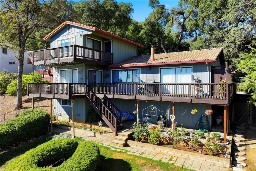 Experience the best of Lake County living in this beautifully refreshed home, perfectly situated on a scenic quarter acre in the highly sought-after Buckingham Park community. Offering stunning lake views, thoughtful updates, and lush, mature gardens, this property invites you to relax, entertain, and enjoy the true beauty of Clear Lake living. Step inside to discover a bright and welcoming open-concept living space that feels both inviting and refined. Large windows frame the sparkling lake views, while the charming antique wood stove adds warmth and character perfect for cozy evenings or gatherings with family and friends. The remodeled kitchen blends style and function with new stainless steel appliances, updated cabinetry, and plenty of prep space for home chefs and entertainers alike. Upstairs, the serene primary suite provides a peaceful retreat complete with a private ensuite bath and a balcony overlooking the lake an ideal spot for your morning coffee or to unwind at sunset. The additional bedrooms on the main level are spacious and freshly painted, with new flooring throughout much of the home lending a clean, modern feel. Every detail has been thoughtfully maintained and upgraded, including a fresh coat of paint on all decks and interior doors, new garage doors with a convenient battery backup system, new gutters, and a beautifully remodeled downstairs bathroom featuring a soaking tub and separate shower. The home also includes updated window coverings, ceiling fans, and a reliable HVAC system recently serviced and in excellent working condition. Outdoors, youll