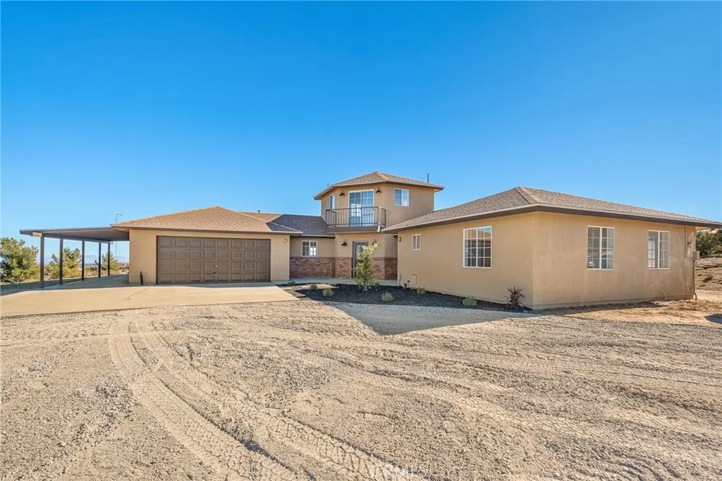 MAJOR PRICE REDUCTION! Experience the extraordinary in this breathtaking ranch-style sanctuary, set on 3.34 panoramic acres with unrivaled 360 views stretching across the Mojave Desert to the majestic San Gabriel Mountains. Infused with the perfect blend of rustic charm and modern luxury, this home has been transformed inside and outfeaturing fresh paint, gleaming quartz countertops, designer cabinetry, and brand-new stainless steel appliances that bring a refined, contemporary edge to every space. Step inside and feel the energy of bright, elevated living with recessed lighting, stylish ceiling fans, and stunning updates throughout. Gather around the living rooms inviting fireplace, or design a dramatic rustic escape in the family room that showcases a beautiful new wood-burning stove. Ascend the striking spiral staircase to the homes show-stopping featurean enchanting turret-style bonus room that rises above the landscape, offering a rare, awe-inspiring vantage point for taking in the endless vistas. The bathrooms have been exquisitely remodeled, blending sophistication with comfort. Outside, the property delivers just as much impact, boasting new chain-link fencing with dual entrances, drought-tolerant landscaping, and limitless space to shape your ultimate desert retreat. From its elevated position, this home offers spectacular sunrises and spellbinding sunsets, painting the horizon with breathtaking color displays that must be seen to be believed. Let this remarkable property become your private desert escapewhere every window frames a masterpiece and every evening fee